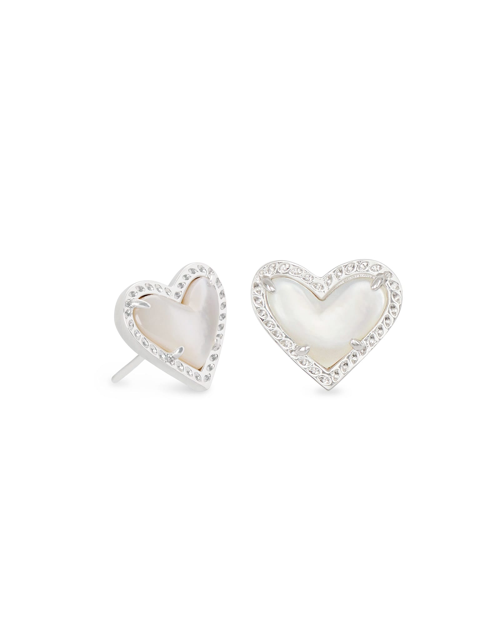 Ari Heart Silver Stud Earrings in Ivory Mother-of-Pearl