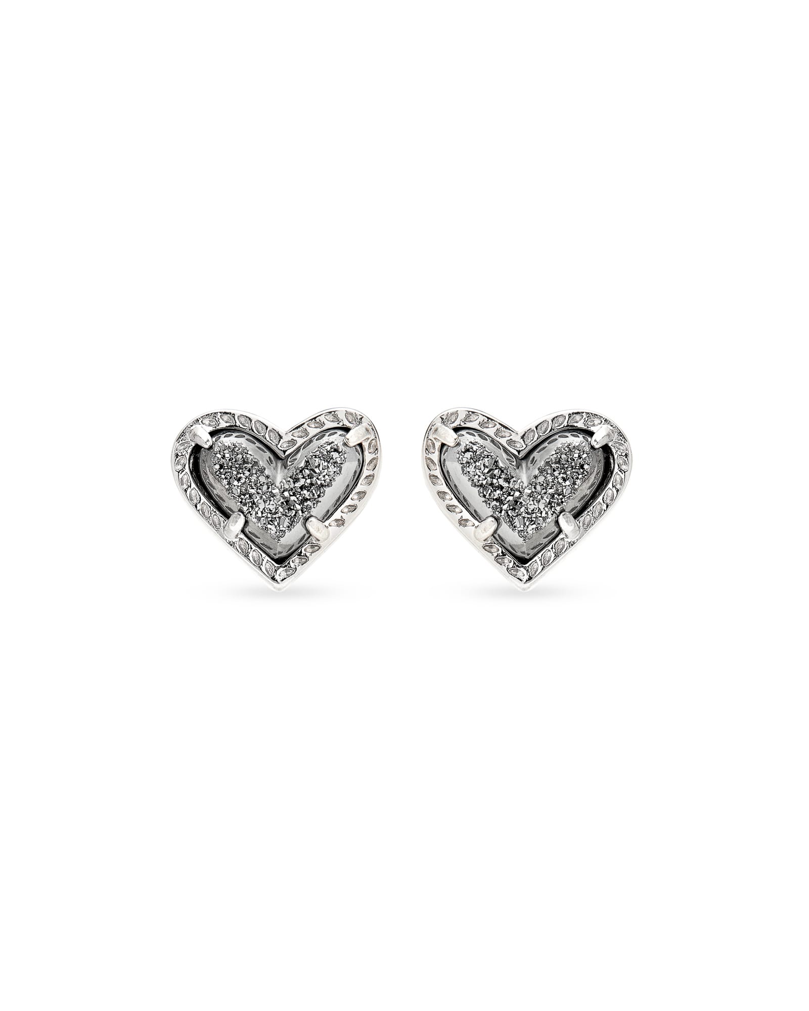 Ari Heart Silver Stud Earrings in Platinum Drusy
