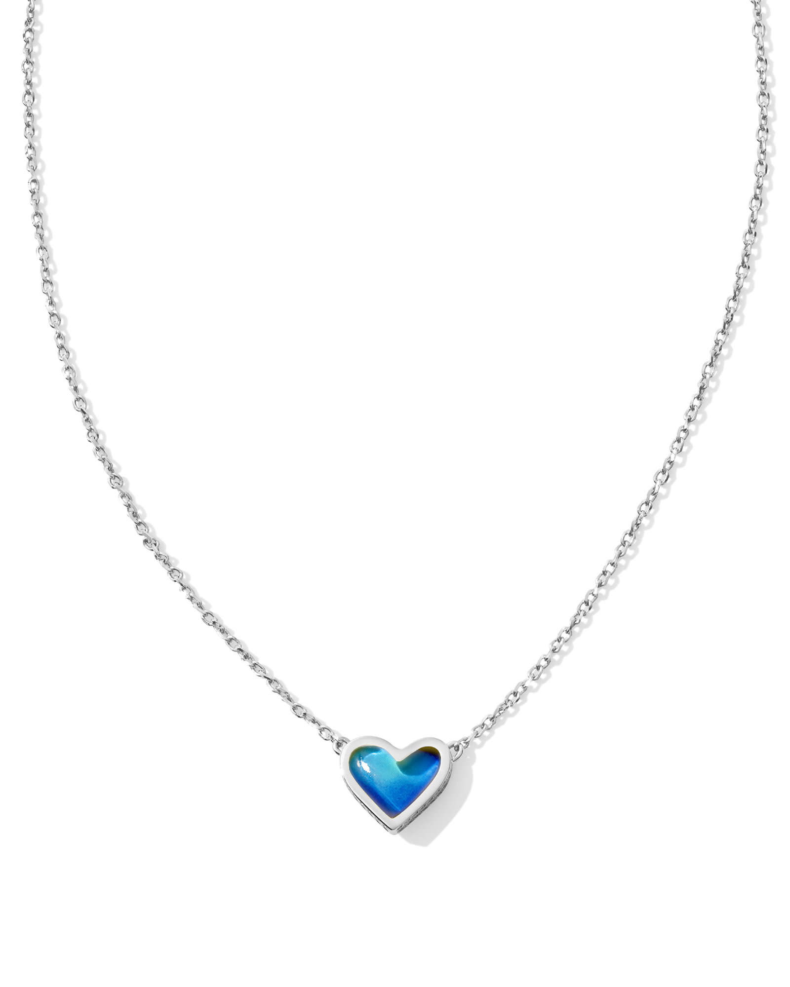 Framed Ari Heart Silver Short Pendant Necklace in Mood Stone