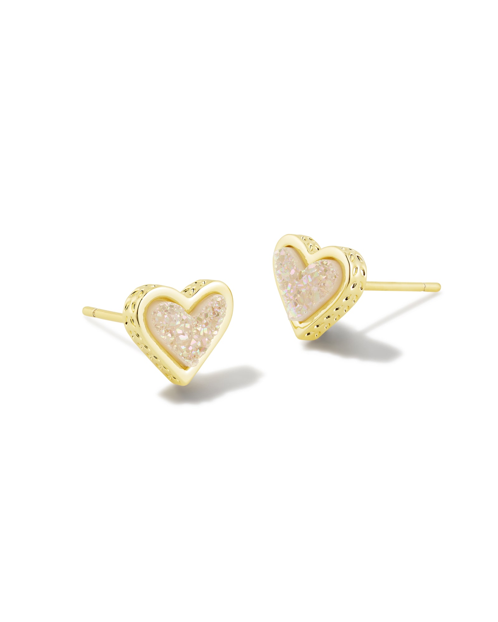 Framed Ari Heart Gold Stud Earrings in Iridescent Drusy