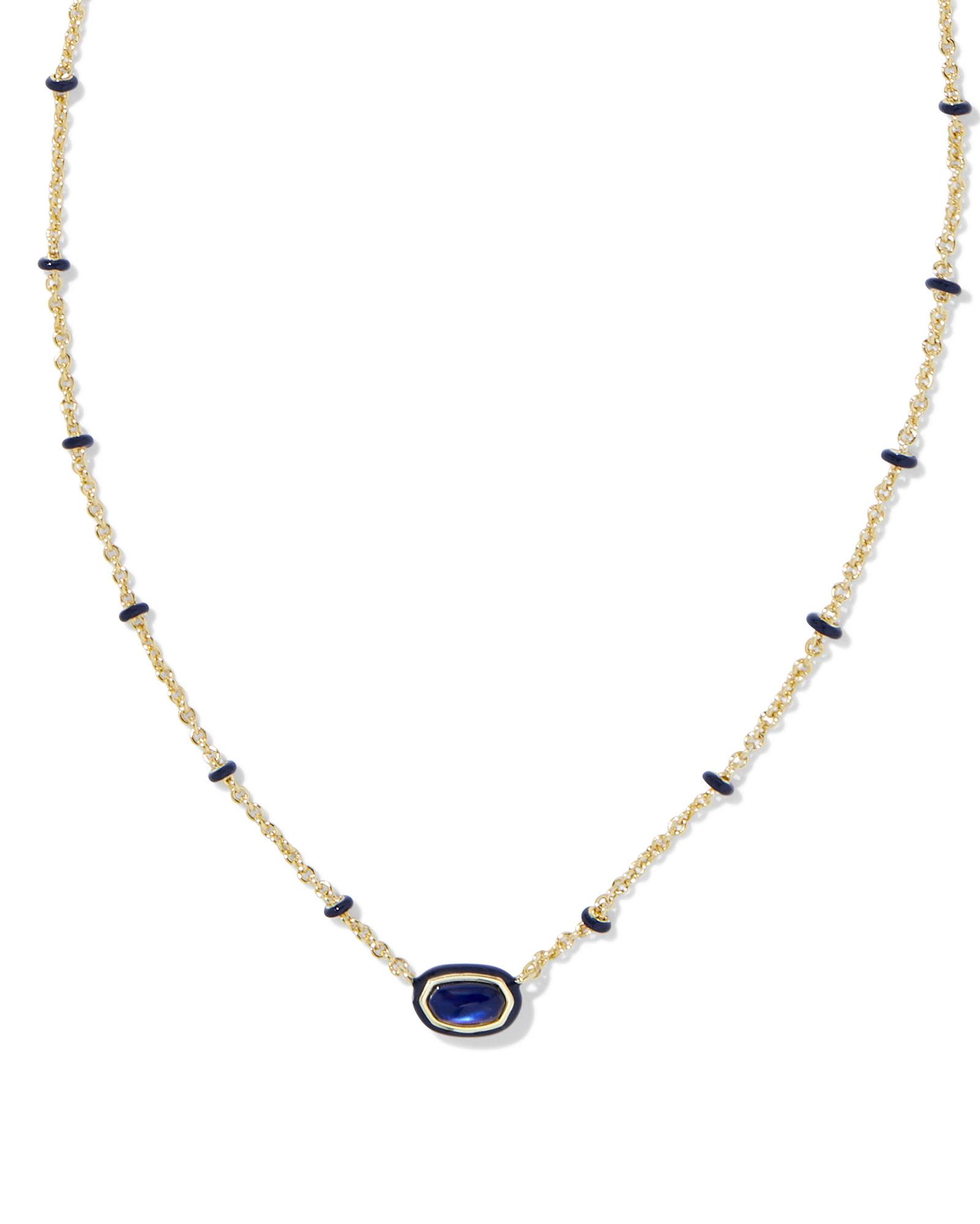 Mini Elisa Gold Enamel Frame Short Pendant Necklace in Cobalt Illusion