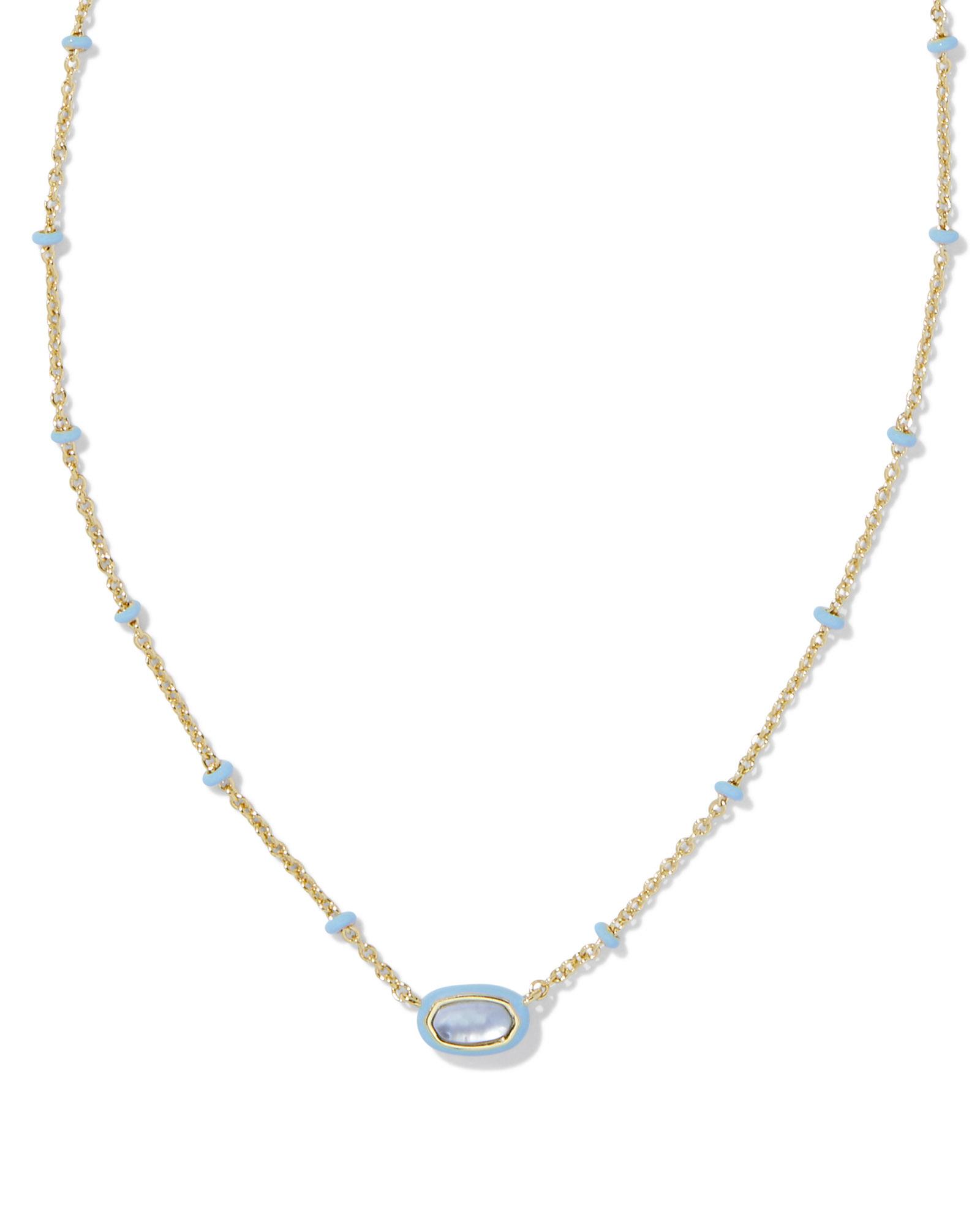 Mini Elisa Gold Enamel Frame Short Pendant Necklace in Periwinkle Illusion