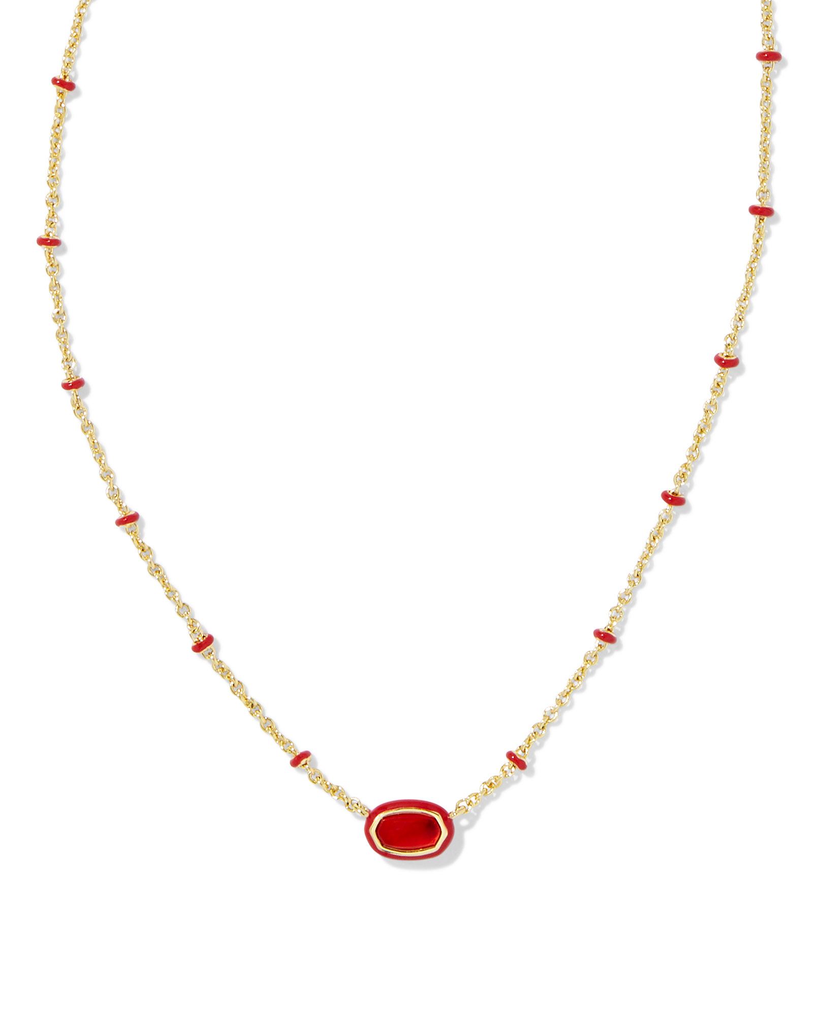Mini Elisa Gold Enamel Frame Short Pendant Necklace in Red Illusion