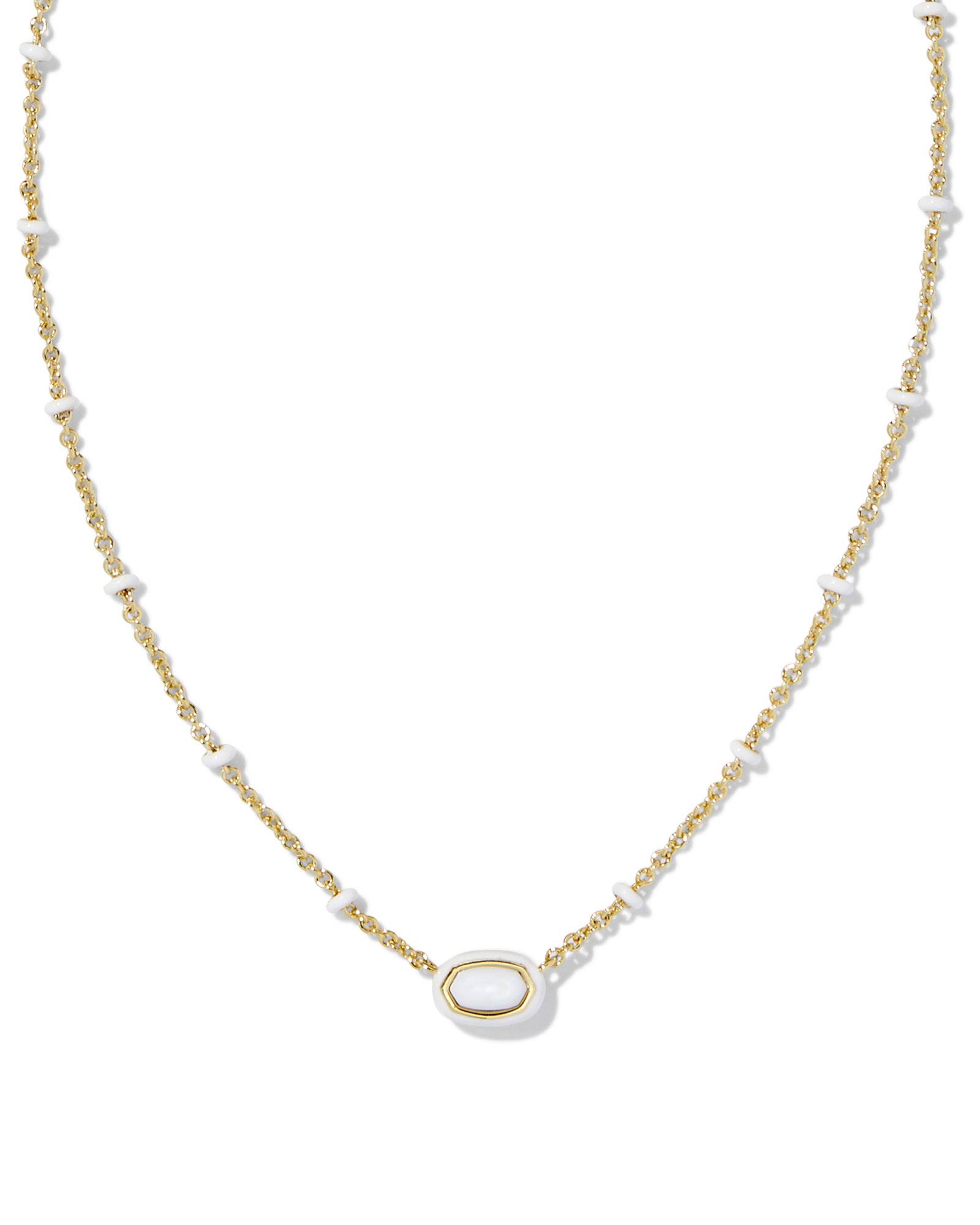 Mini Elisa Gold Enamel Frame Short Pendant Necklace in White Mother-of-Pearl