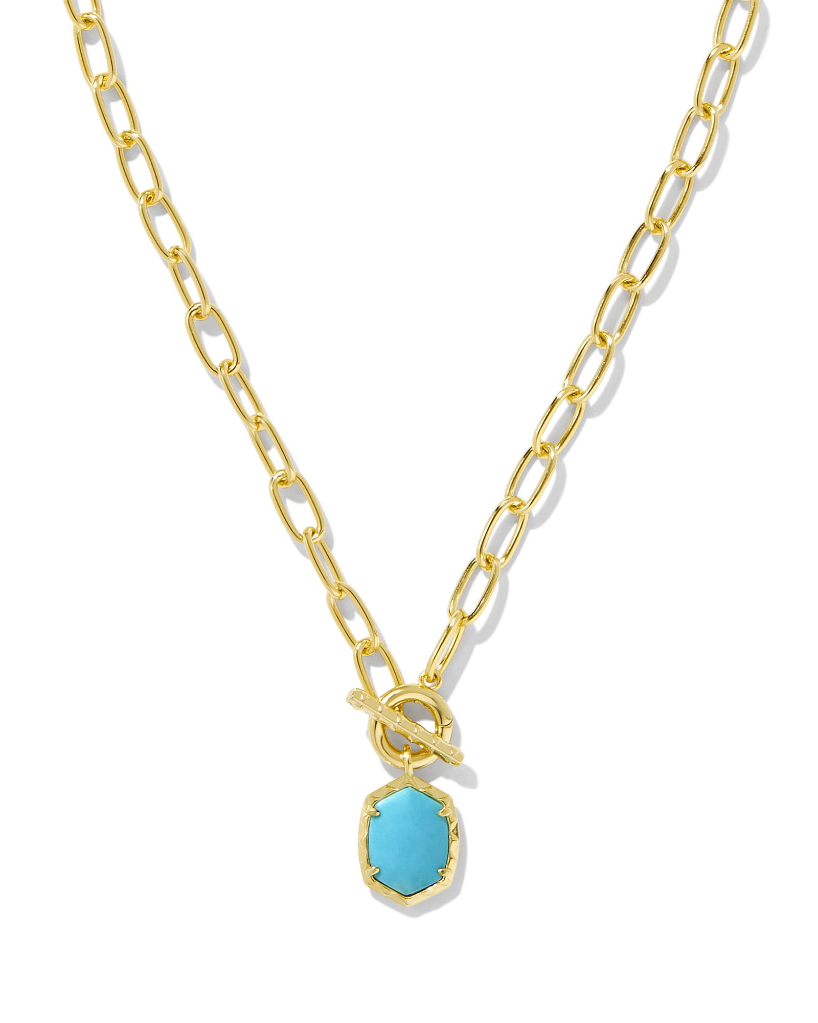 Daphne Convertible Gold Link and Chain Necklace in Variegated Turquoise Magnesite