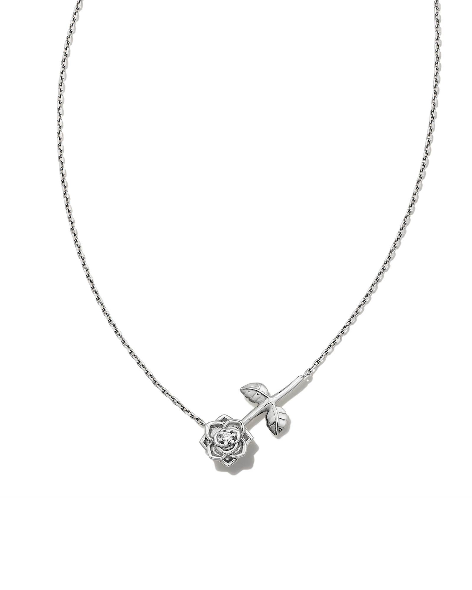 Ansel Rose 14k White Gold Pendant Necklace in White Diamond