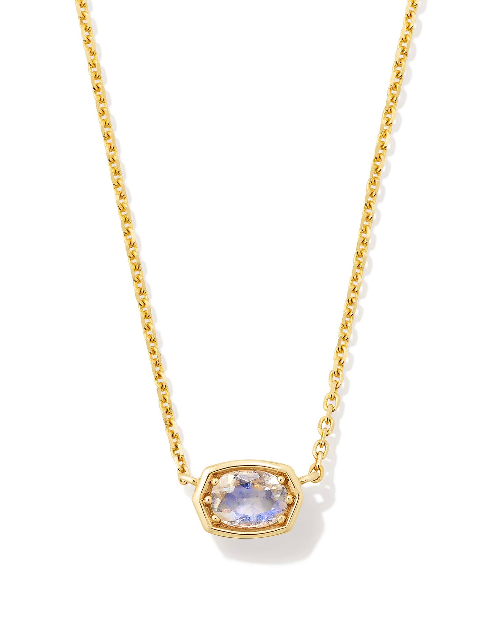 Marisa 14k Yellow Gold Oval Solitaire Pendant Necklace in Rainbow Moonstone