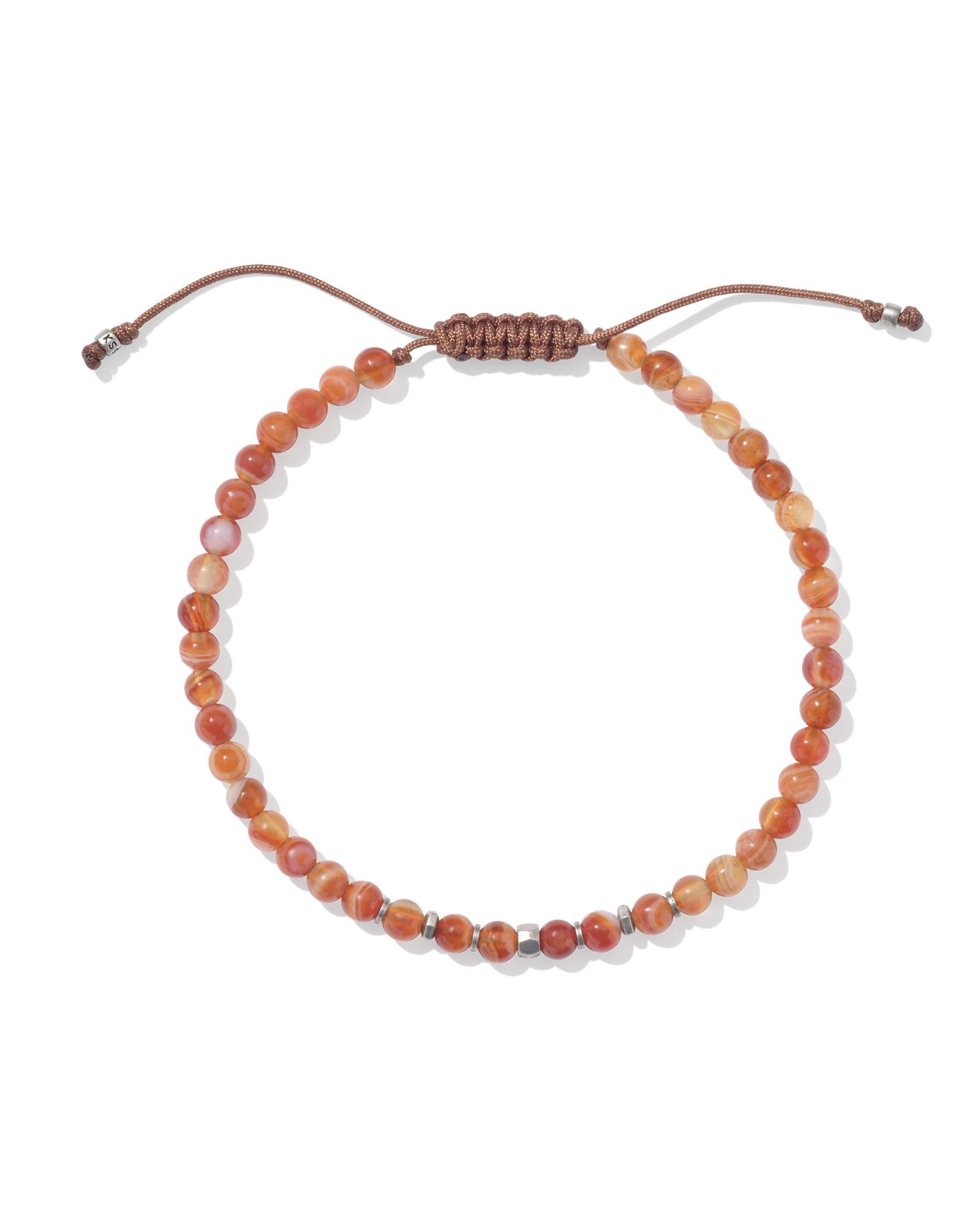 Otto Oxidized Sterling Silver Beaded Bracelet in Orange Banded Agate