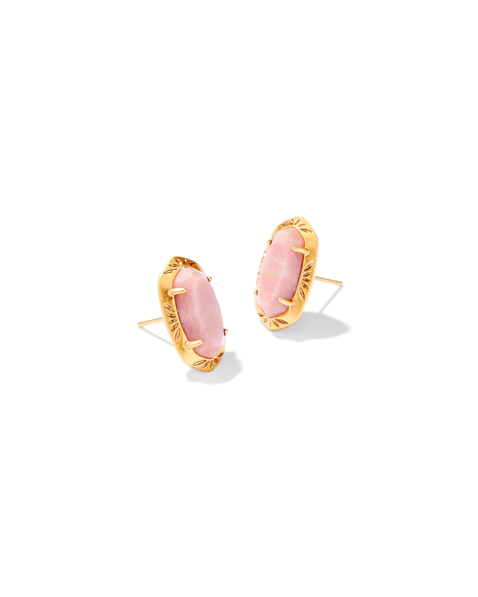 Ellie Vintage Gold Etch Frame Stud Earrings in Blush Pink Quartzite