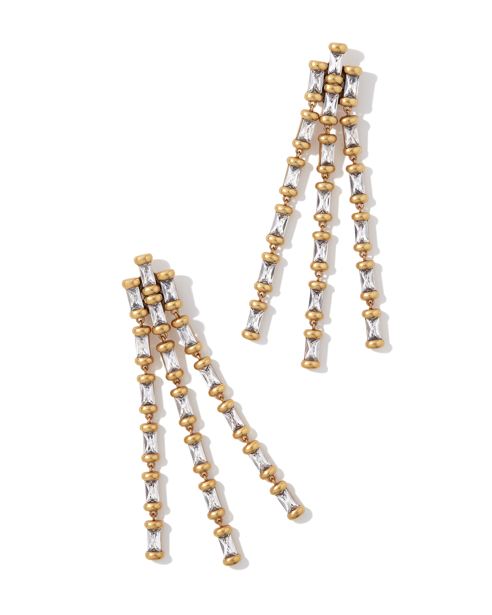 Ember Vintage Gold Crystal Statement Earrings in White Crystal