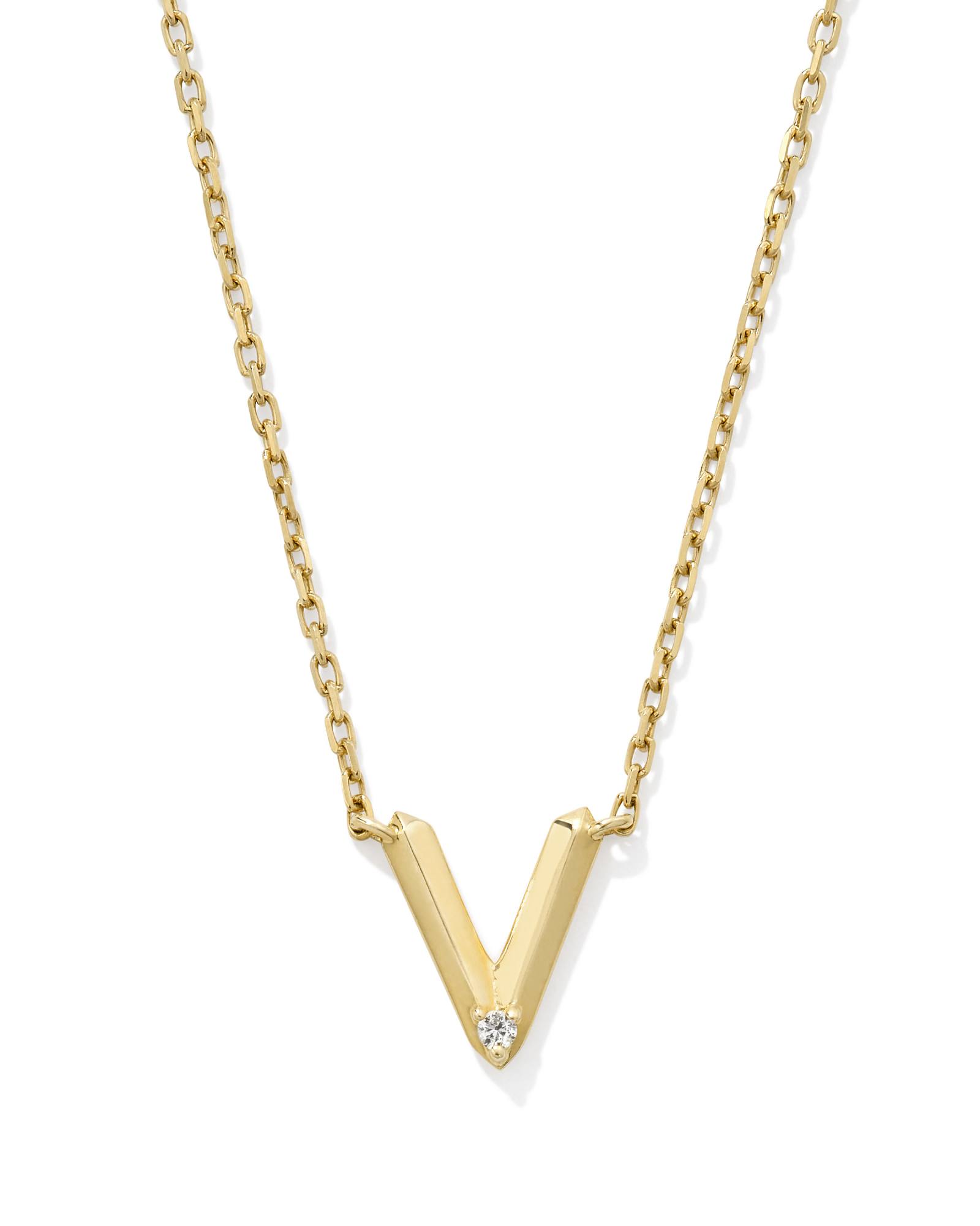 Diamond Accent Letter V 14k Yellow Gold Pendant Necklace in White Diamond
