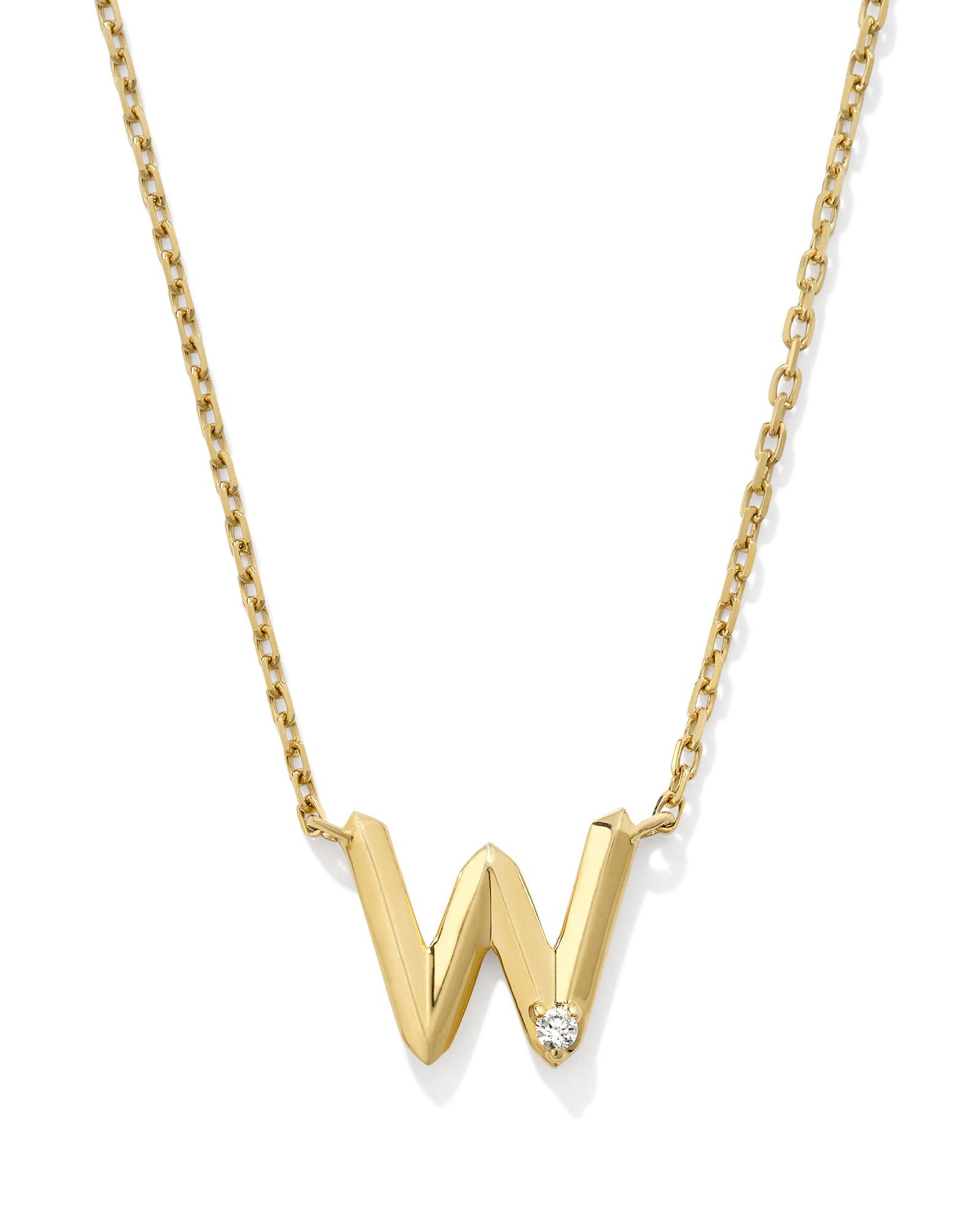 Diamond Accent Letter W 14k Yellow Gold Pendant Necklace in White Diamond