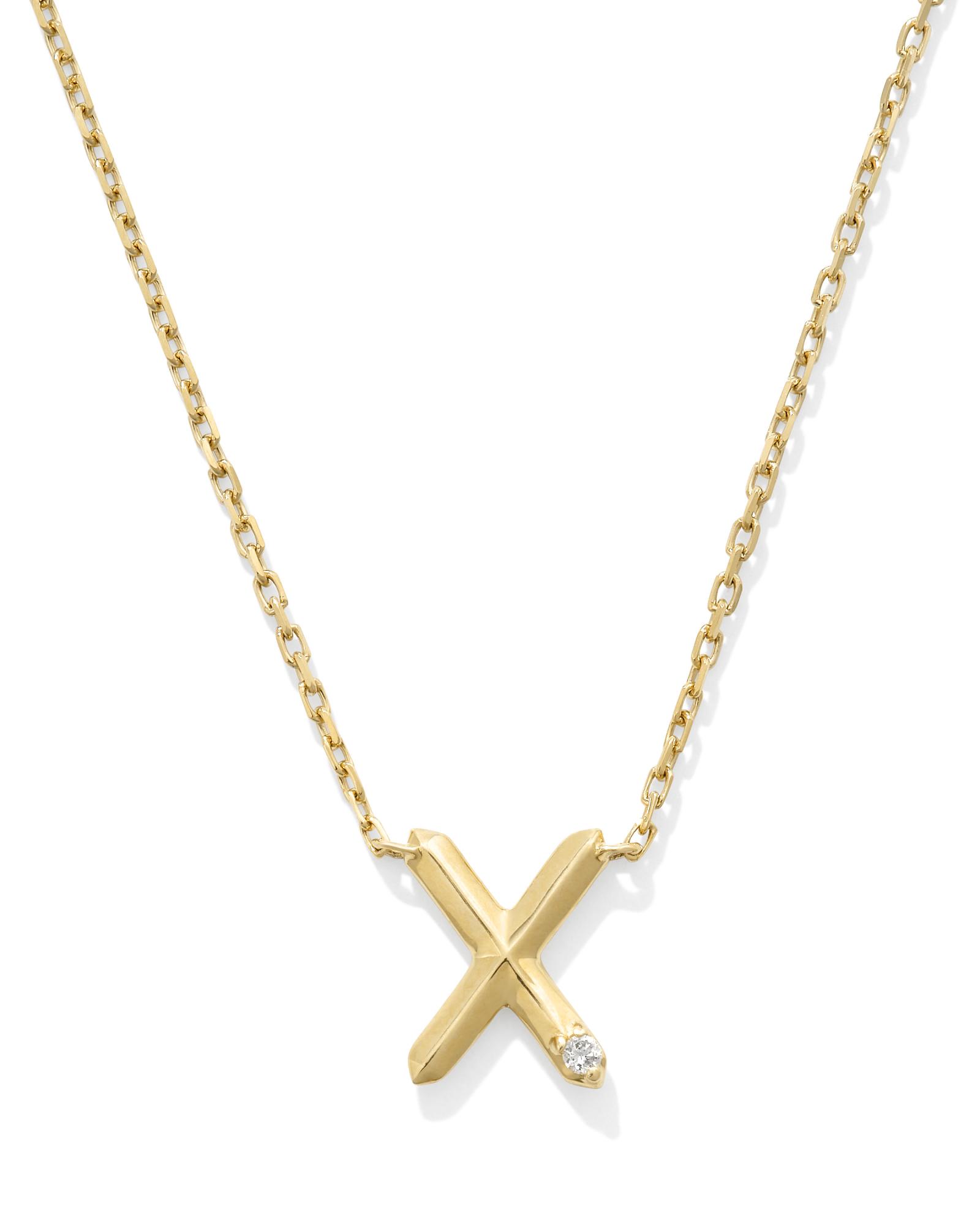 Diamond Accent Letter X 14k Yellow Gold Pendant Necklace in White Diamond
