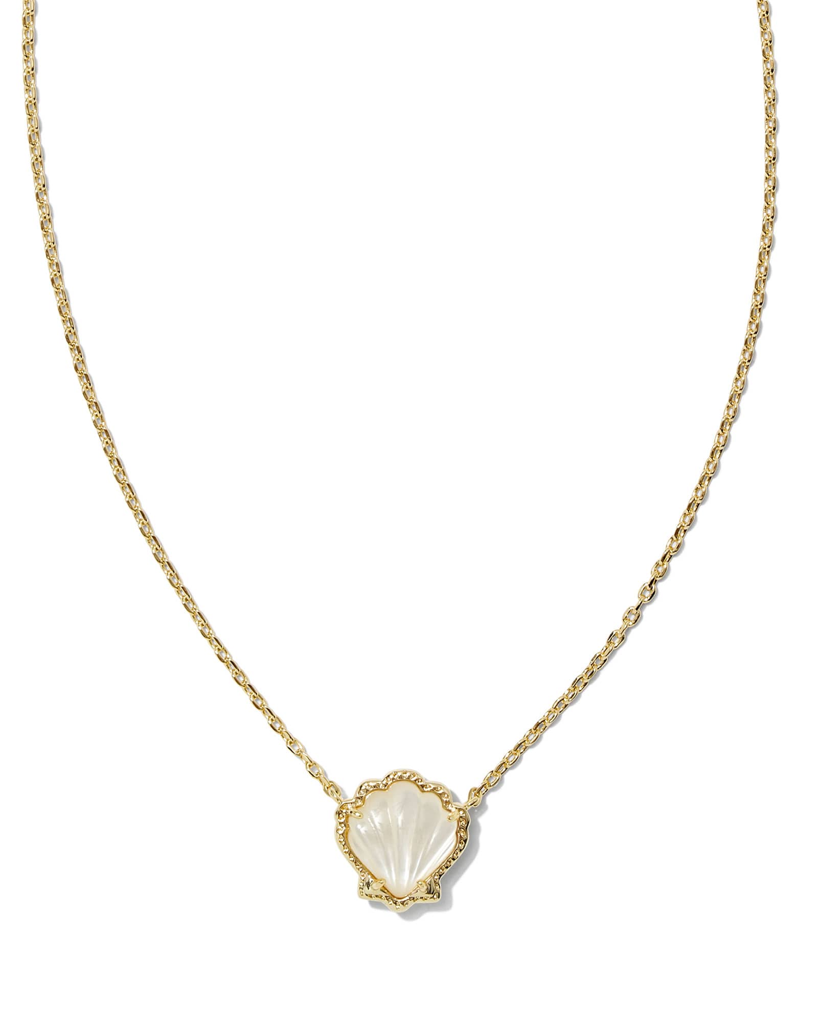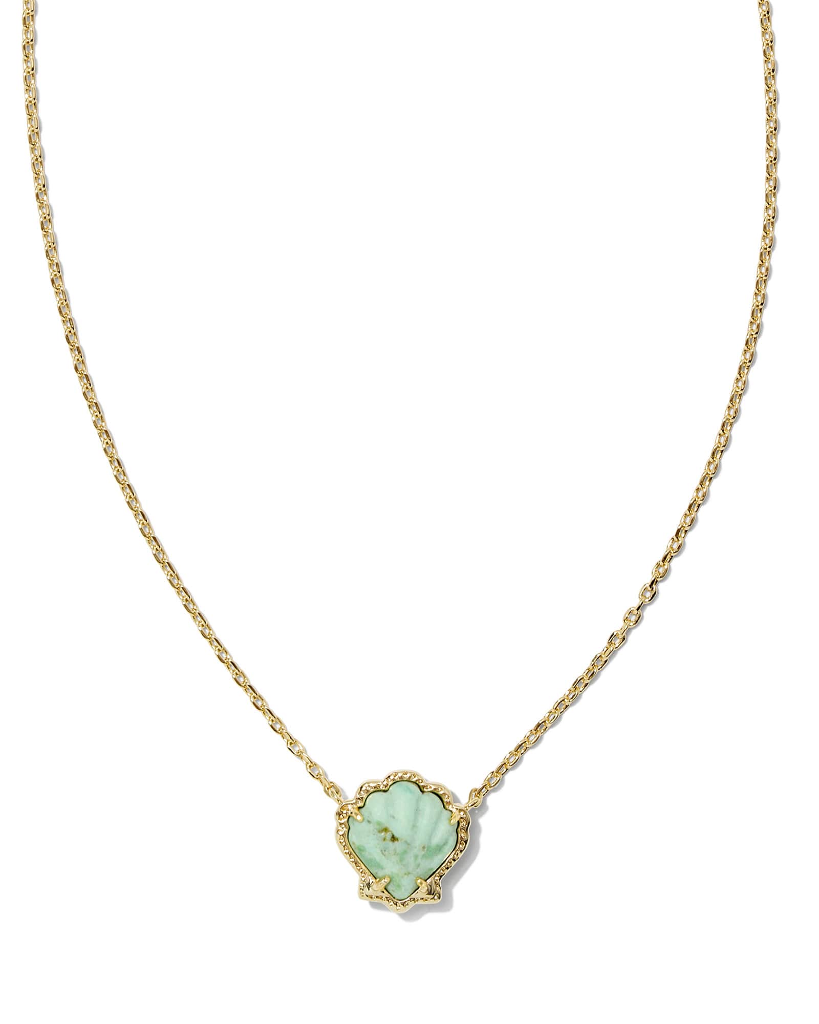 Brynne Gold Shell Short Pendant Necklace in Sea Green Chrysocolla