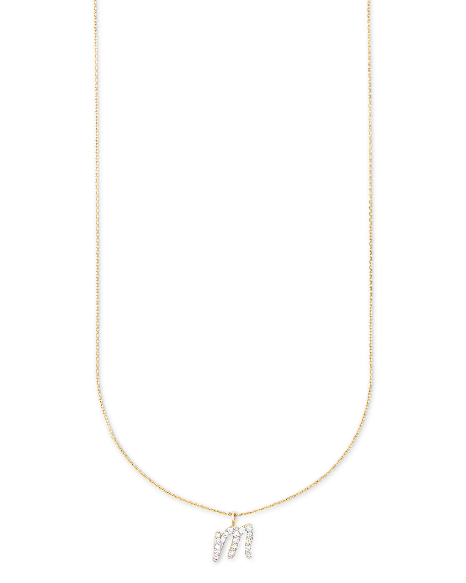 The Diamond Letter M Pendant Necklace in 14k Yellow Gold is a striking example of sentimental style. Beautifully timeless and personal to each wearer, the Diamond Letter M Pendant Necklace was designed to be treasured for a lifetime. To create these pendant necklaces, each letter is hand drawn in our Austin design studio, then layered with pave diamonds for breathtaking sparkle. Shop the Diamond Letter Pendant Necklace Collection