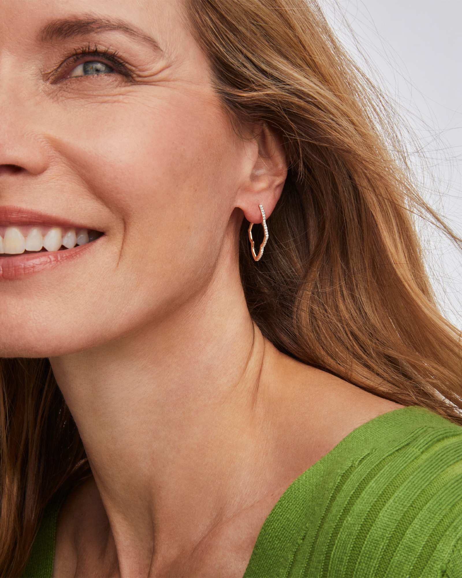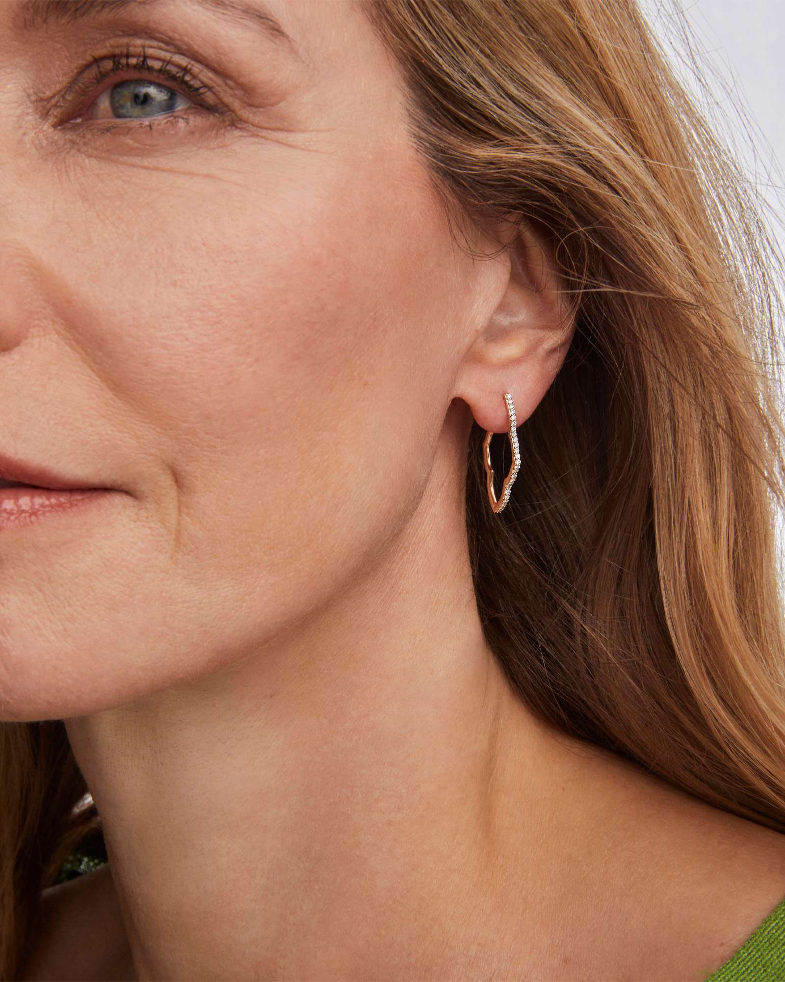 The Abbie 14k Yellow Gold Pave Hoop Earrings are a statement-making style and a beautiful interpretation of one of our bestselling icons. This unique hoop silhouette is inspired by our Abbie shape, an elongated version of our medallion logo. Crafted with 14k gold and beautiful pave diamonds, these earrings are ready to shine and stand out for a lifetime.