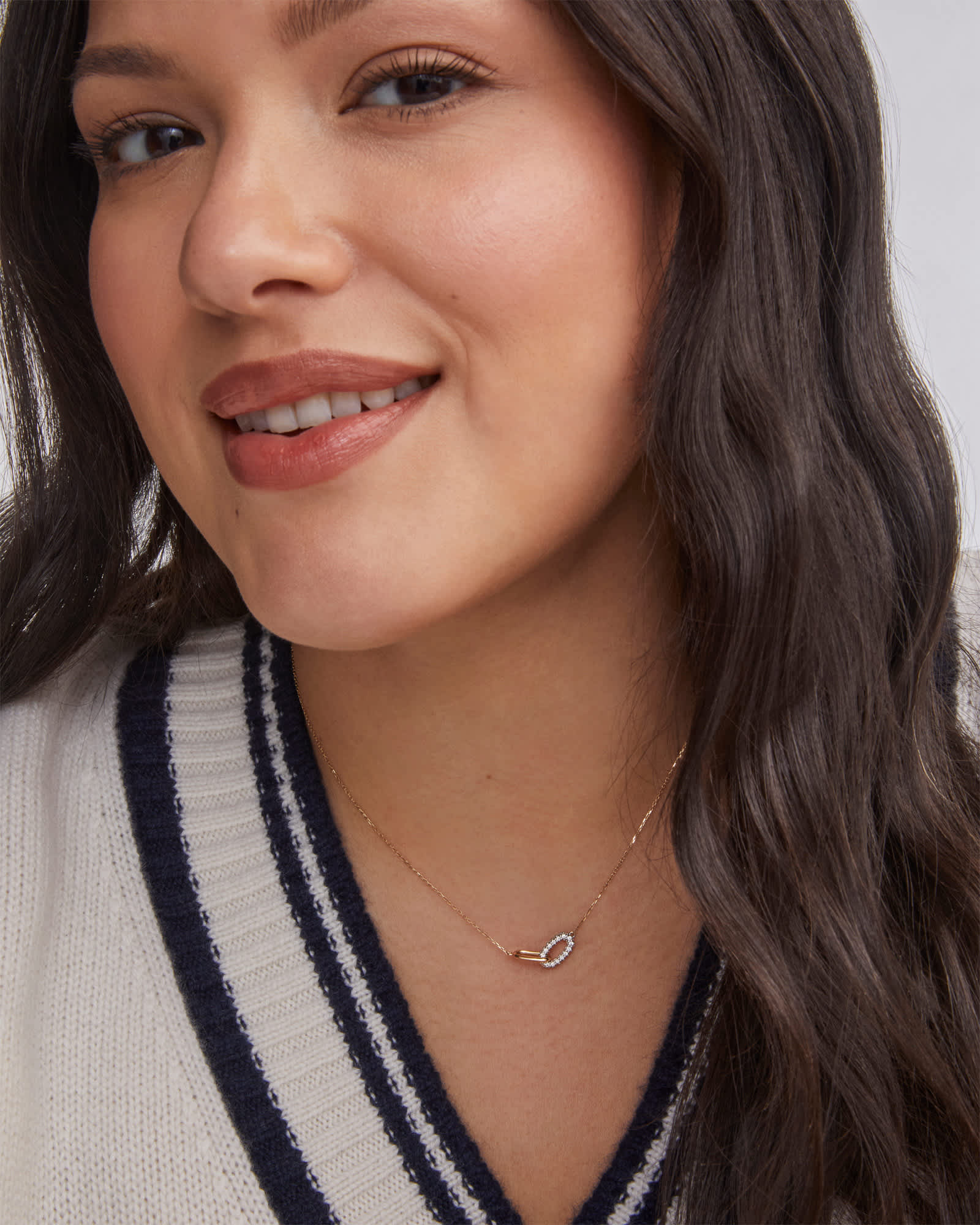 The beauty is in the details when it comes to the Elisa 14k Yellow Gold Interlocking Pendant Necklace in White Diamond. Crafted with 14k Gold and timeless, hand-placed diamonds that bring just the right amount of shine, this forever accessory is perfect for every day yet glamourous enough for your most formal events. We have taken steps to ensure that, when applicable, our diamonds are conflict free by requiring our suppliers to comply with the Kimberley Process.