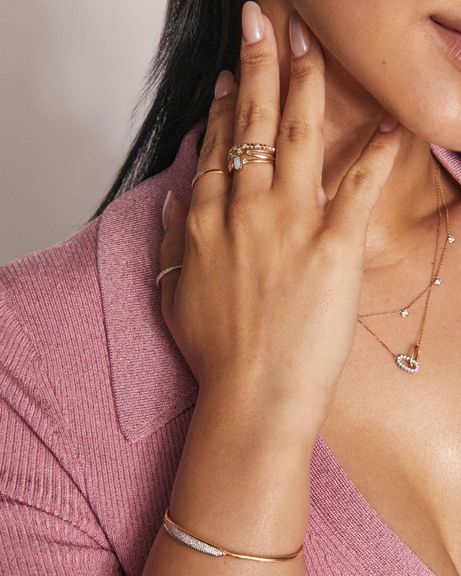 A sophisticated statement handcrafted with timeless 14k gold and a dusting of pave diamonds. Whether you wear it alone or folded into your wrist stack, either way you style the Marisa 14k Yellow Gold Statement Cuff Bracelet in White Diamond, youāll want to roll your sleeves up and give this piece some room to shine.
