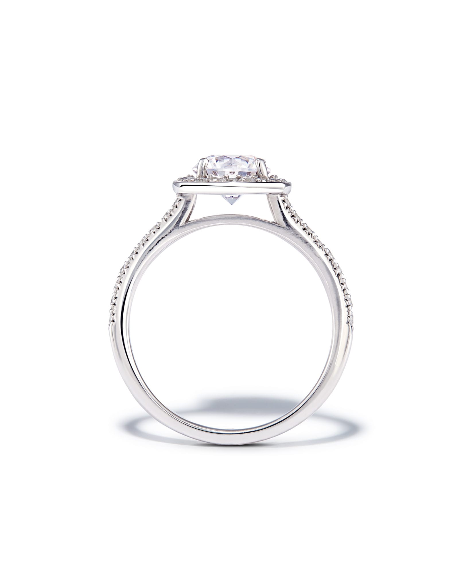 For a love that believes more is more, may we introduce the Round Iconic Halo Engagement Ring in 14k White Gold.