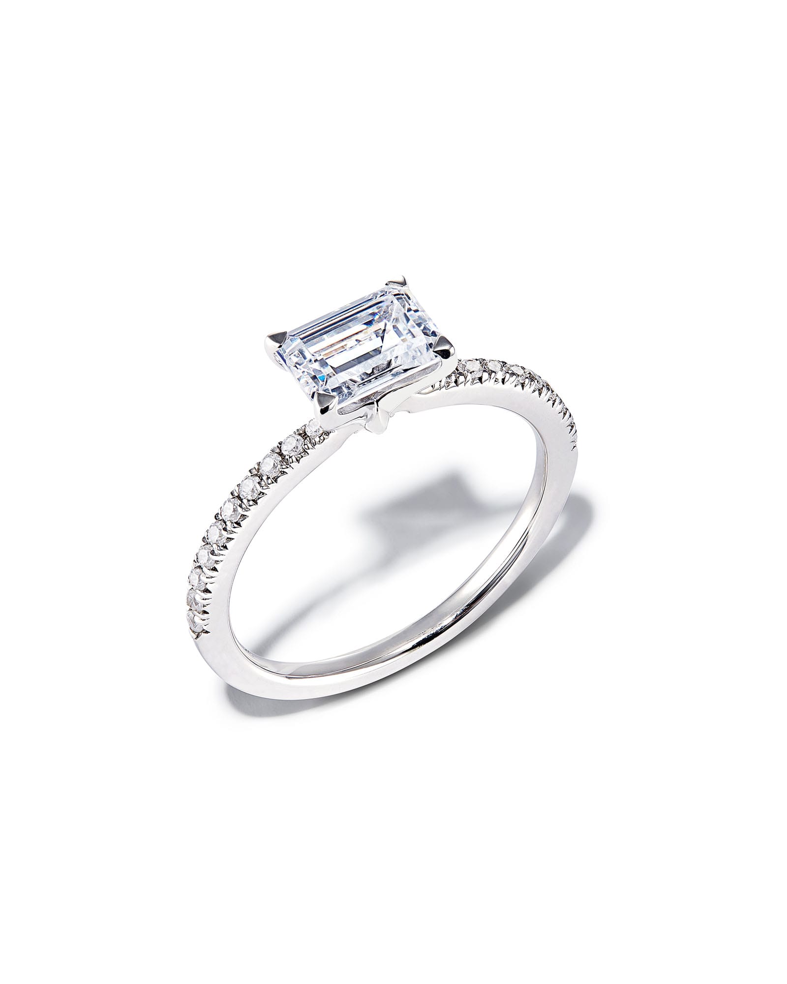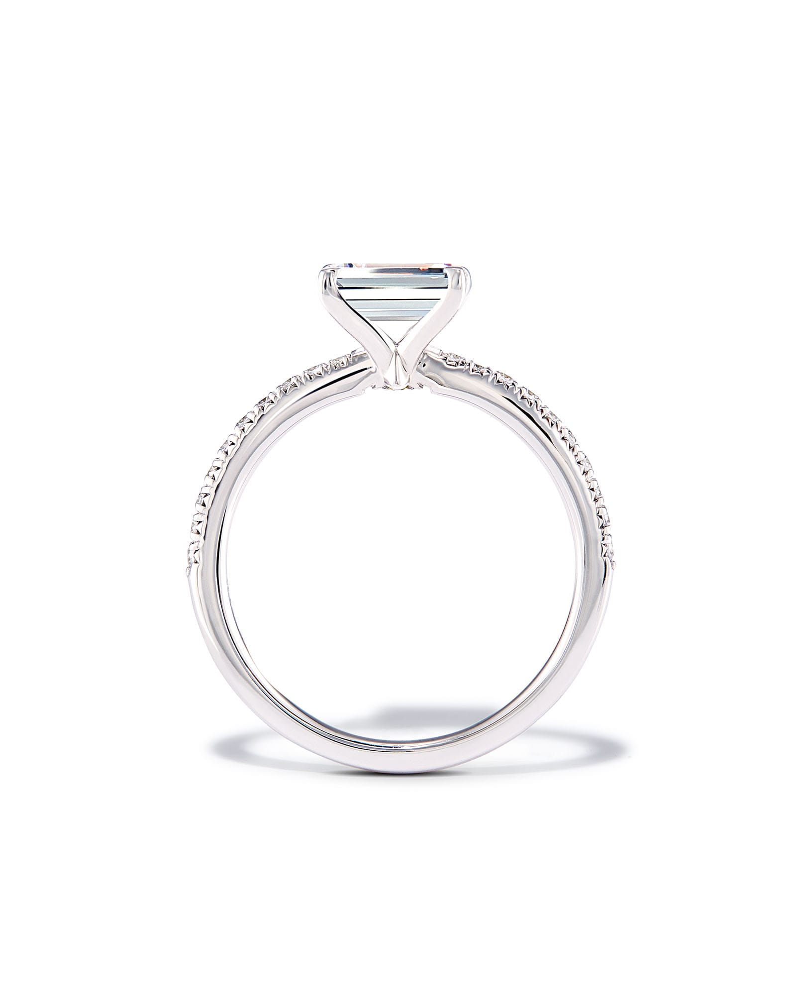 Our Emerald Solitaire Engagement Ring with Pavé Diamonds in 14k White Gold delivers on the promise of bold, bright, and classic.