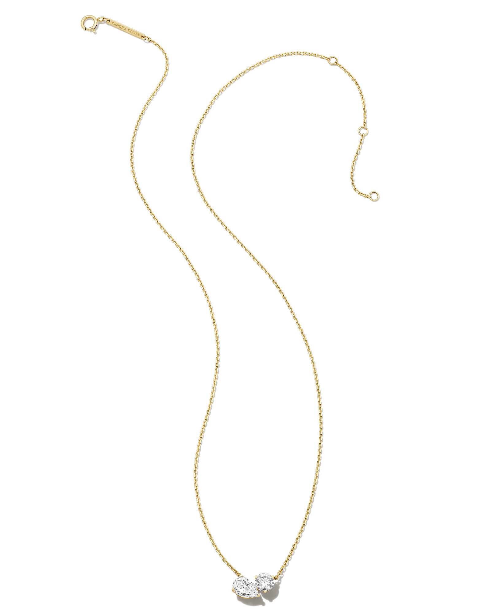 1.3 ct Lab Grown White Diamond Toi et Moi Large Pendant Necklace in 14k Yellow Gold