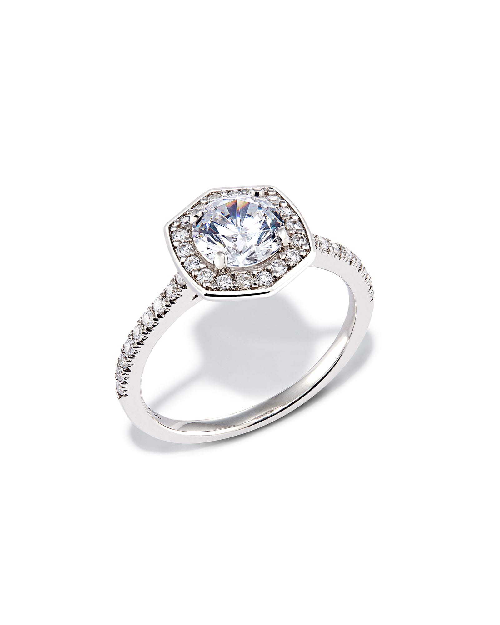 For a love that believes more is more, may we introduce the Round Iconic Halo Engagement Ring in 14k White Gold.