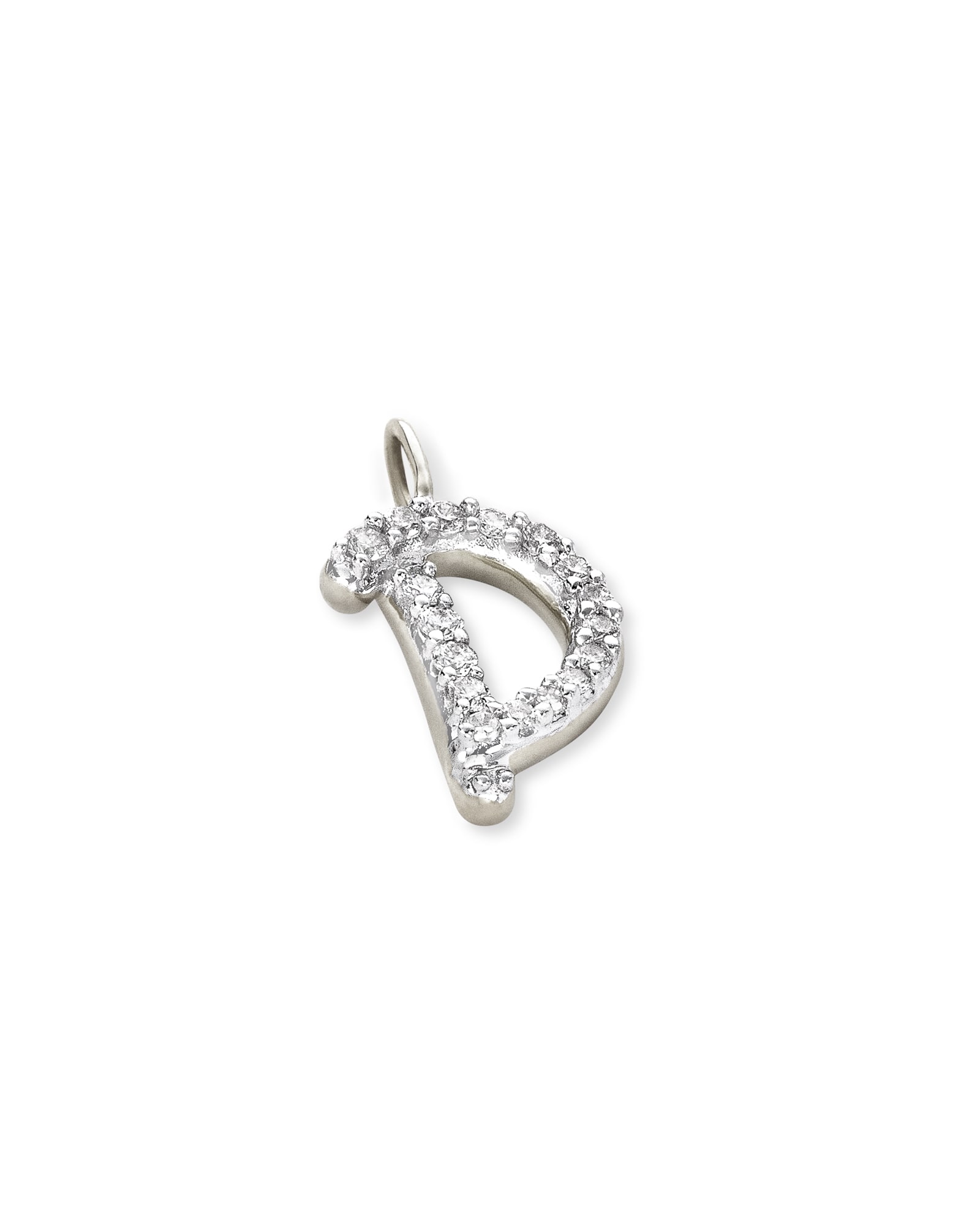 A personal accent that will last forever, wear the 14k White Gold Letter D Charm in White Diamond to represent yourself, your partner, your child, and more.