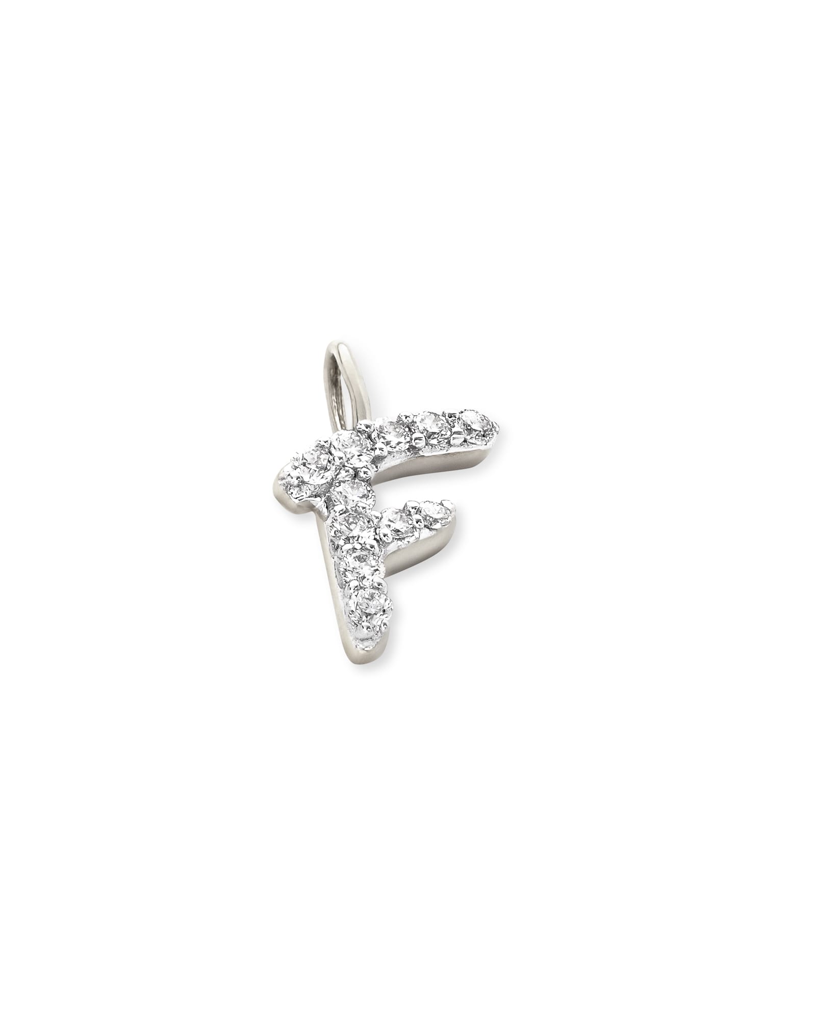 A personal accent that will last forever, wear the 14k White Gold Letter F Charm in White Diamond to represent yourself, your partner, your child, and more.