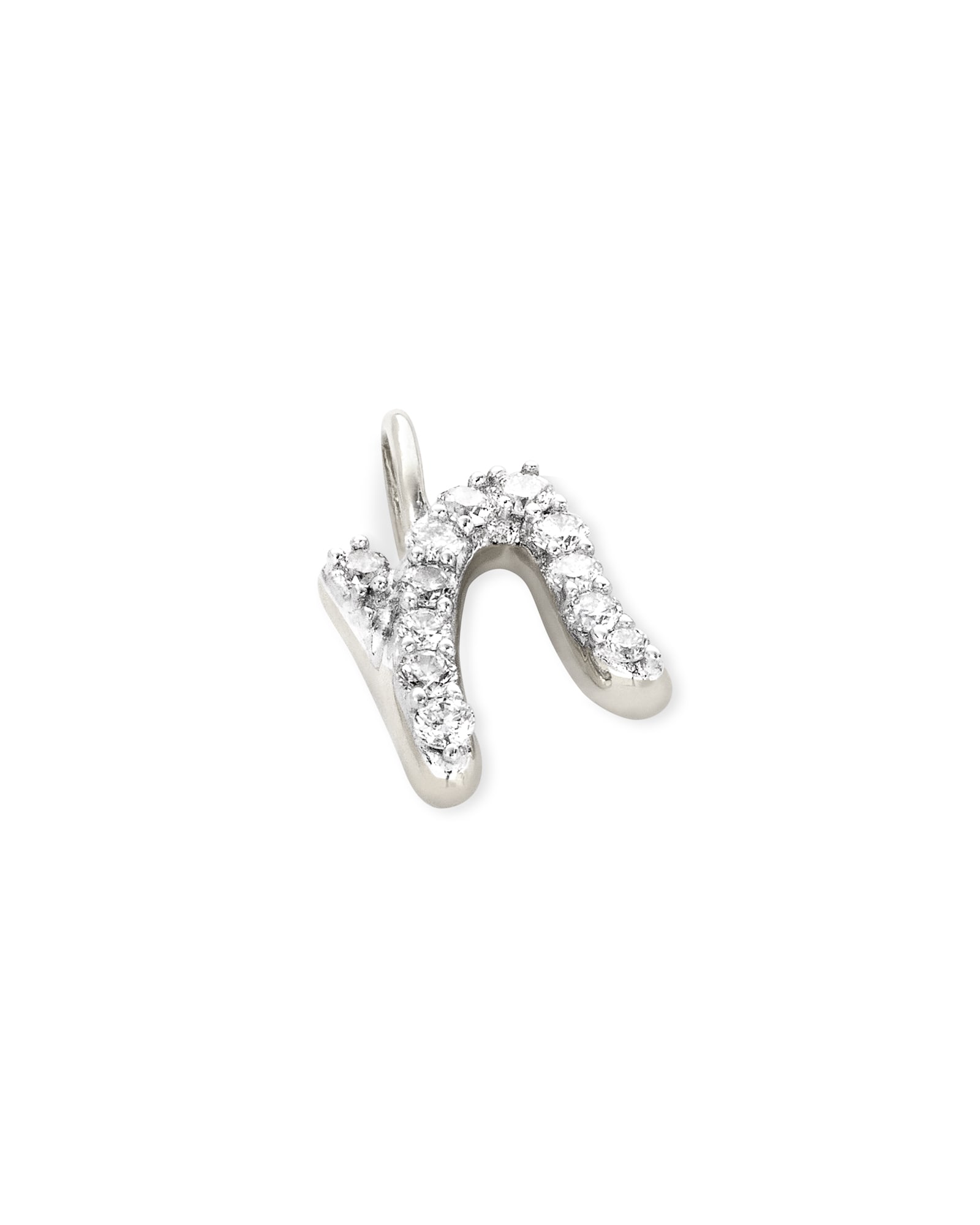 A personal accent that will last forever, wear the 14k White Gold Letter N Charm in White Diamond to represent yourself, your partner, your child, and more.