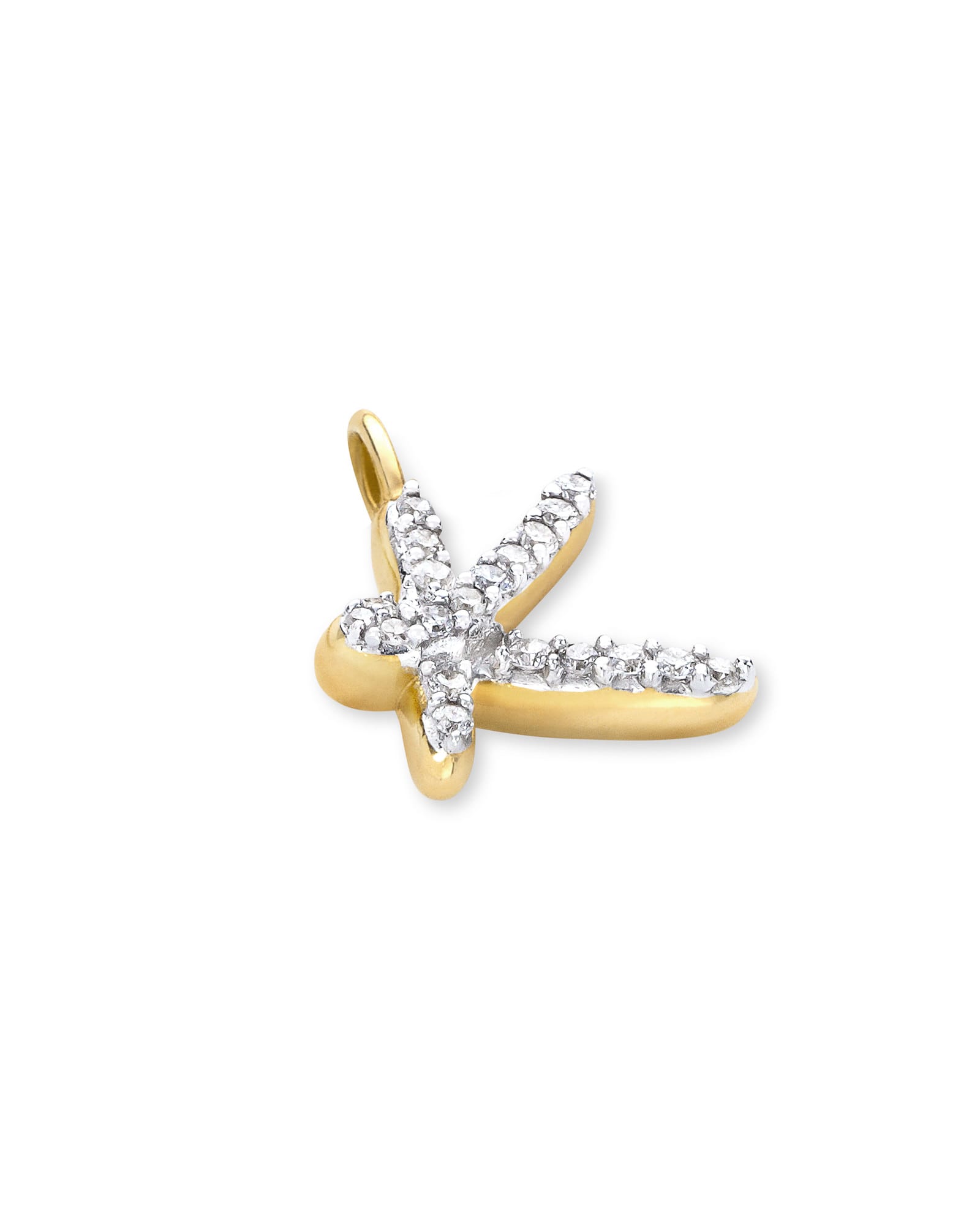 A personal accent that will last forever, wear the 14k Yellow Gold Letter K Charm in White Diamond to represent yourself, your partner, your child, and more.