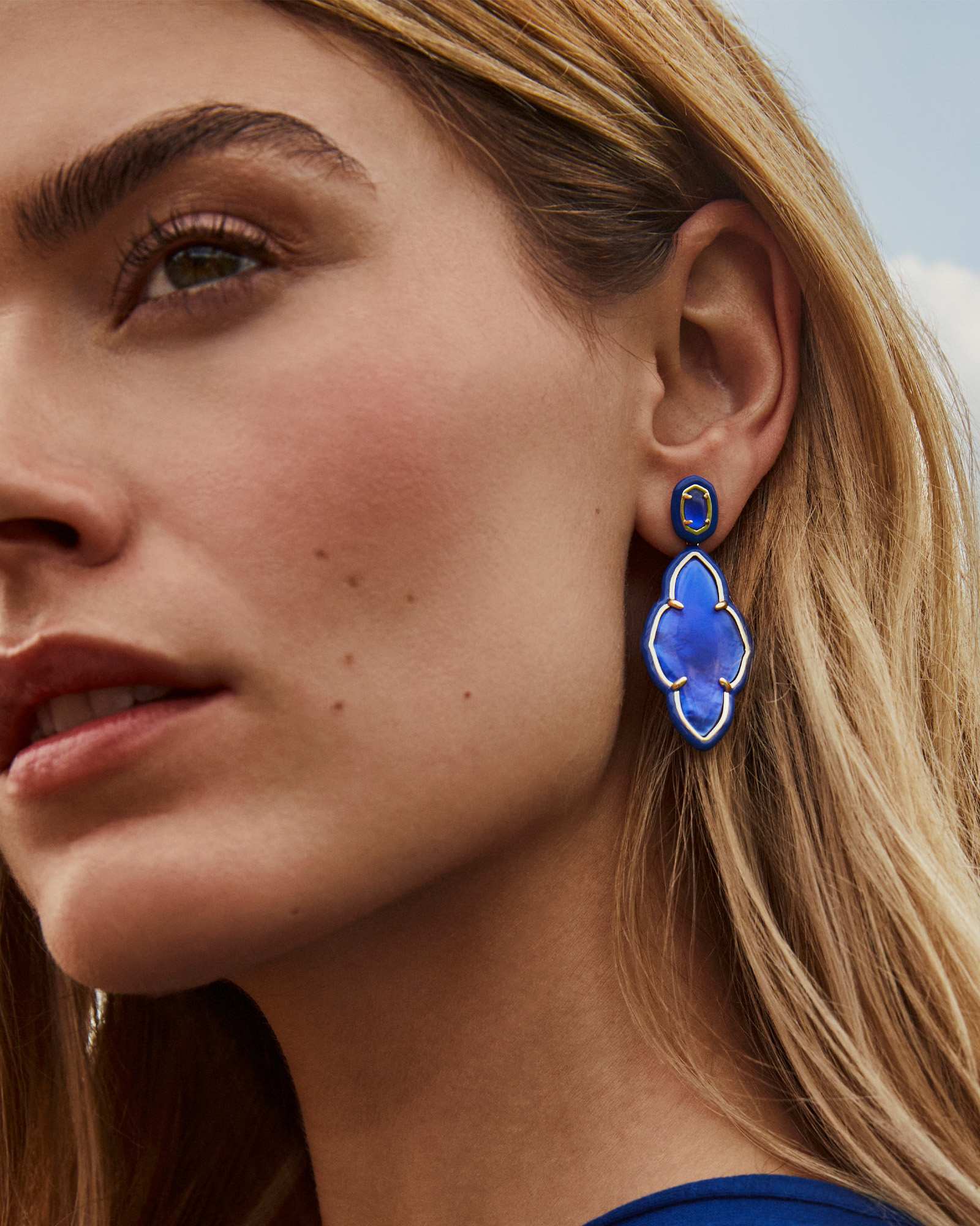 Abbie Gold Enamel Frame Statement Earrings in Cobalt Illusion