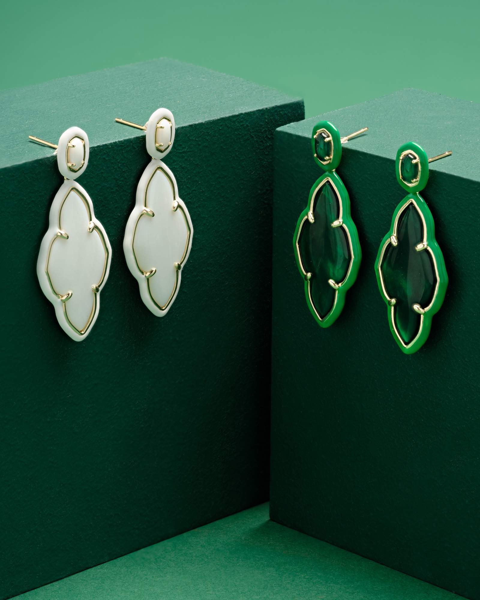 Abbie Gold Enamel Frame Statement Earrings in Emerald Illusion