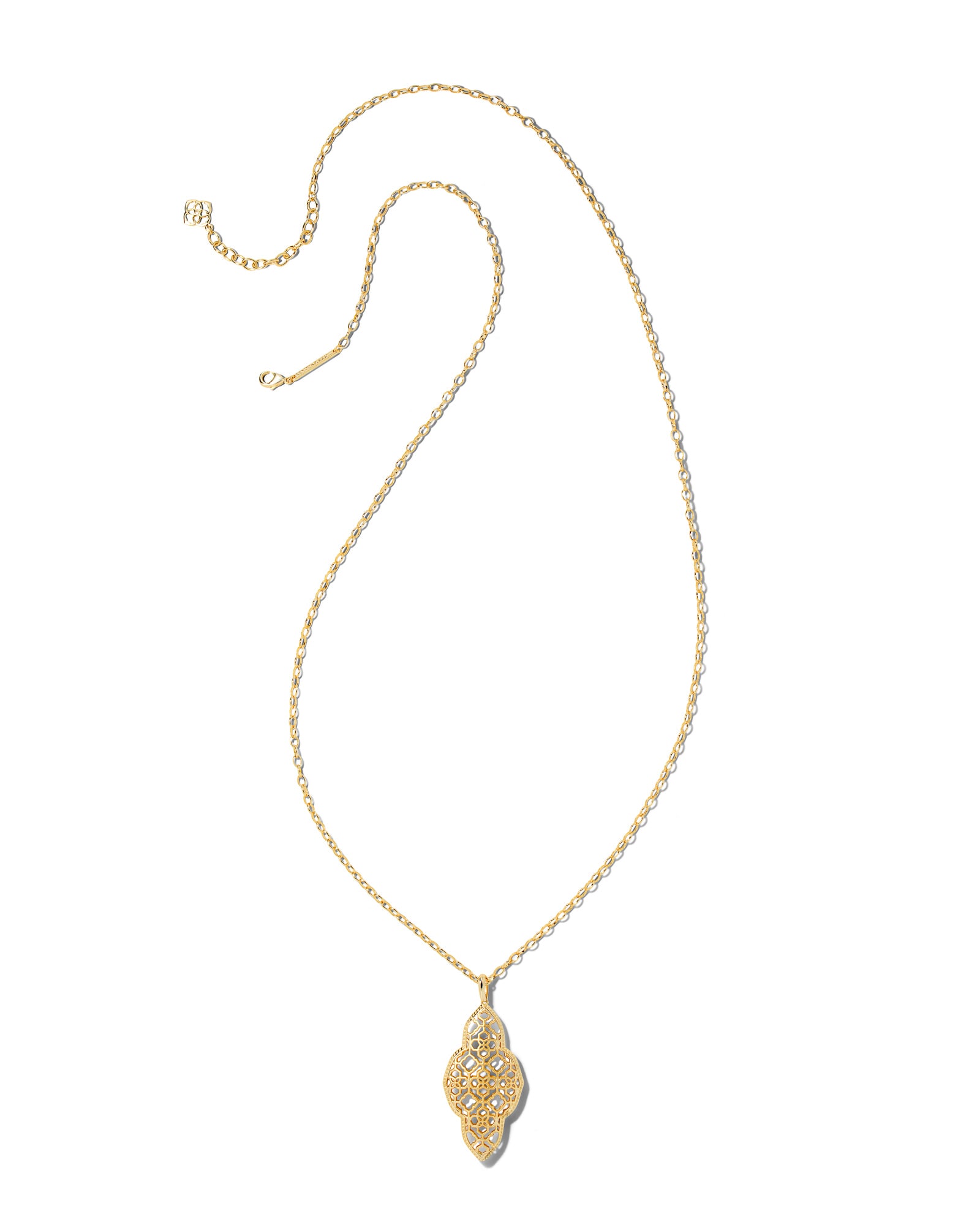 Meet the Abbie Long Pendant Necklace in Gold, paying homage to 10 years of our iconic medallion. Elegant, elongated, complete with custom filigree detail, add a classic to your collection celebrating all you love about KS.