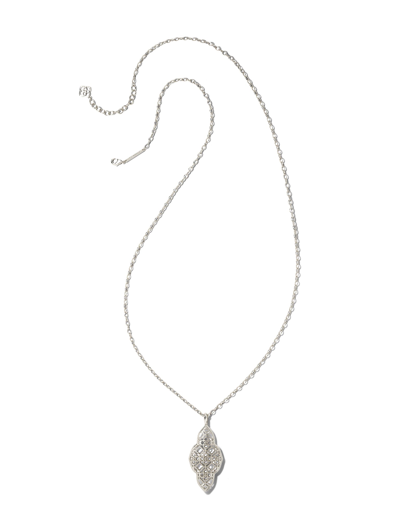 Meet the Abbie Long Pendant Necklace in Silver, paying homage to 10 years of our iconic medallion. Elegant, elongated, complete with custom filigree detail, add a classic to your collection celebrating all you love about KS.