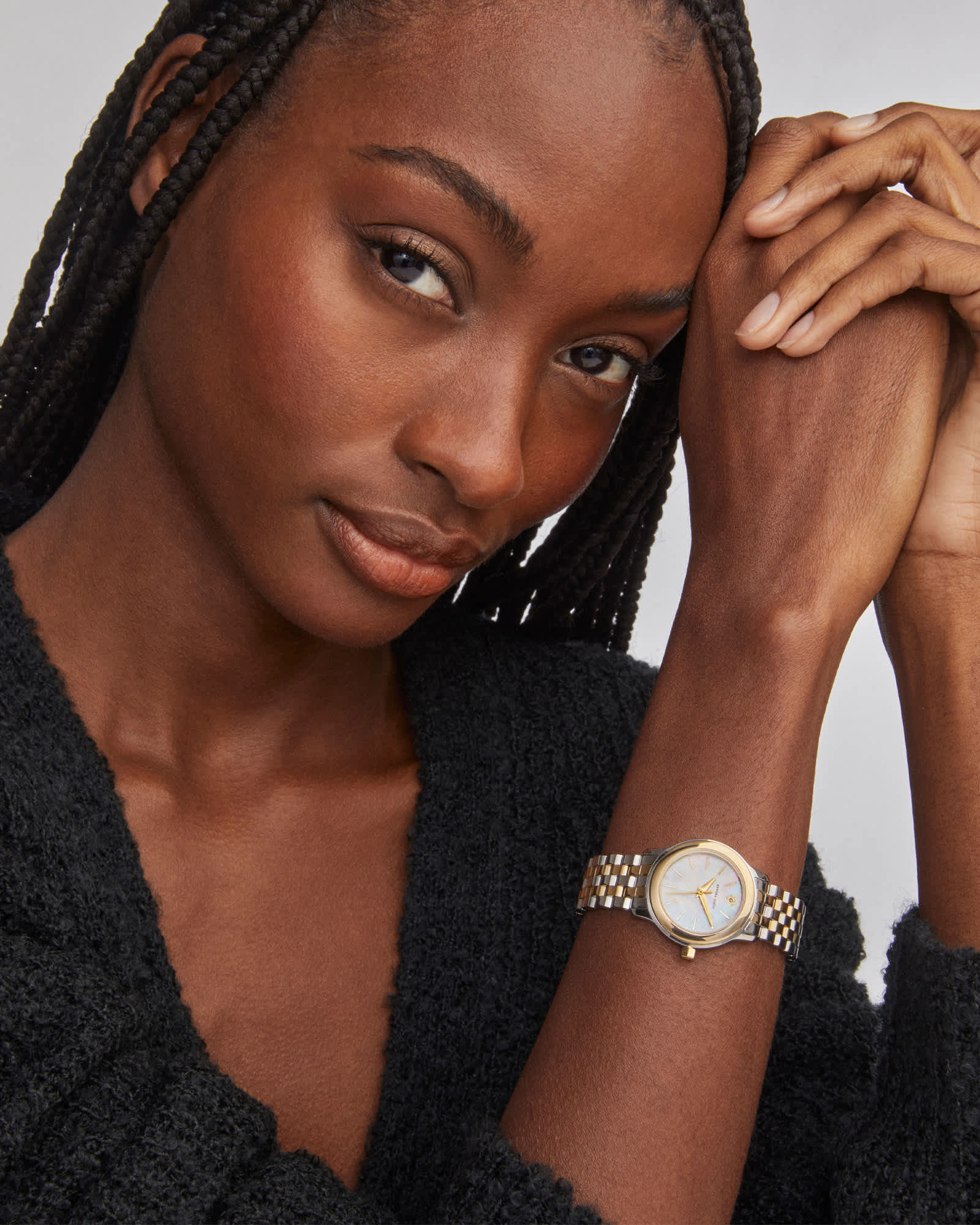 Our popular Alex watch gets a dainty update in the Alex Two Tone Stainless Steel 28mm Watch in Ivory Mother-of-Pearl. Slightly smaller than our 35mm Alex silhouette, this watch makes a delicate and refined addition to your wrist stack. True to our love of sparkle and elevated details, you can find a glimmer of diamond embedded within our iconic medallion logo. We have taken steps to ensure that, when applicable, our diamonds are conflict free by requiring our suppliers to comply with the Kimberley Process.
