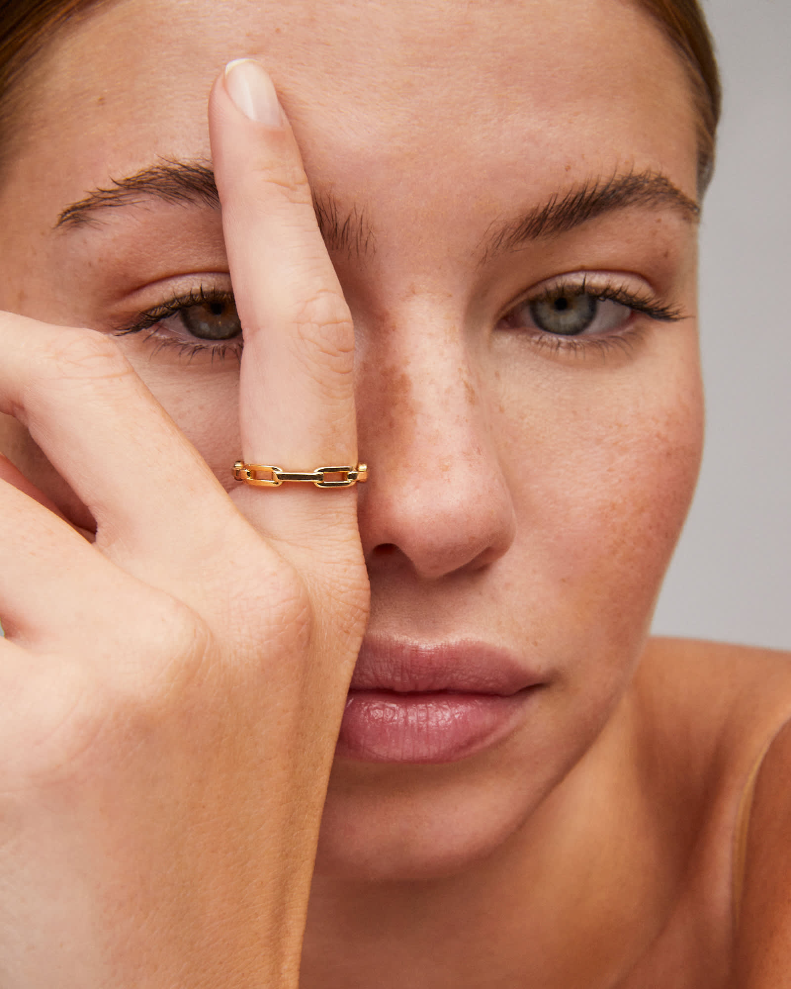 Make a statement with this classic in the making. Featuring a trending square link chain, the Andi Band Ring in Gold is an elevated basic to stack every day.