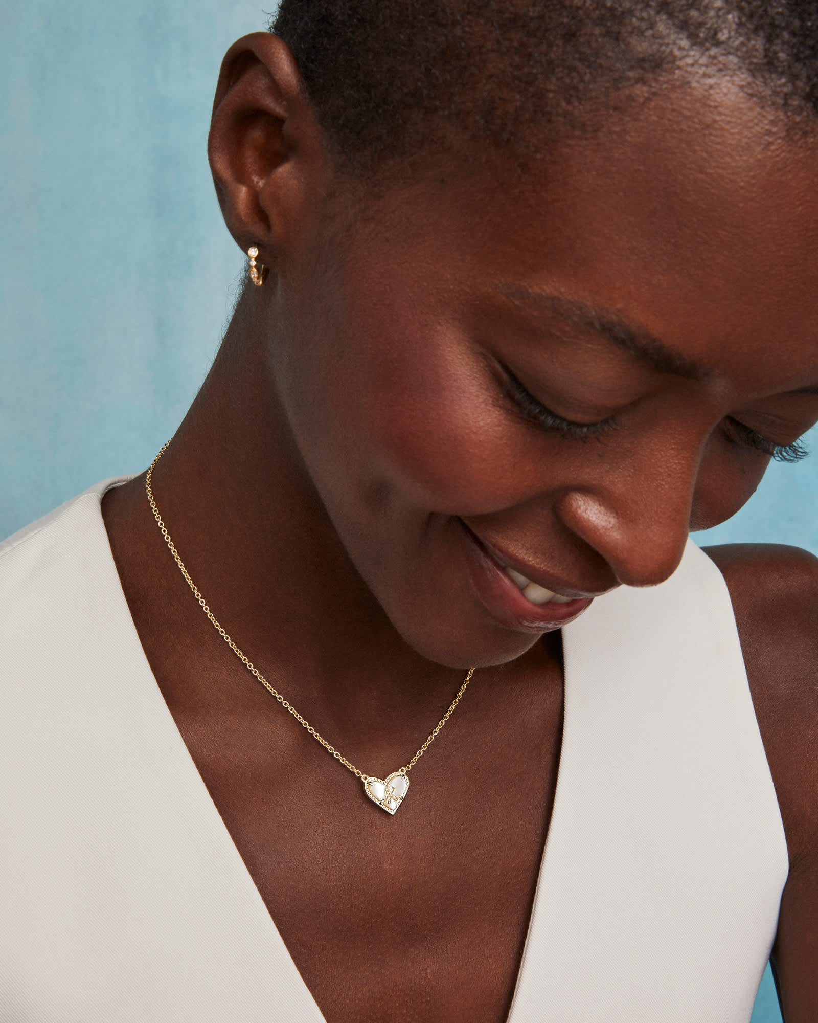 Get ready to fall in love: the Ari Heart Letter K Gold Short Pendant Necklace is destined to be your new neck stack essential. Featuring a sweet heart shape inspired by our iconic Ari Heart silhouette, this necklace has a personal touch with a beautiful block letter at its center. Even better? The letter is repeated on the back so you can flip it for an all-metal look.