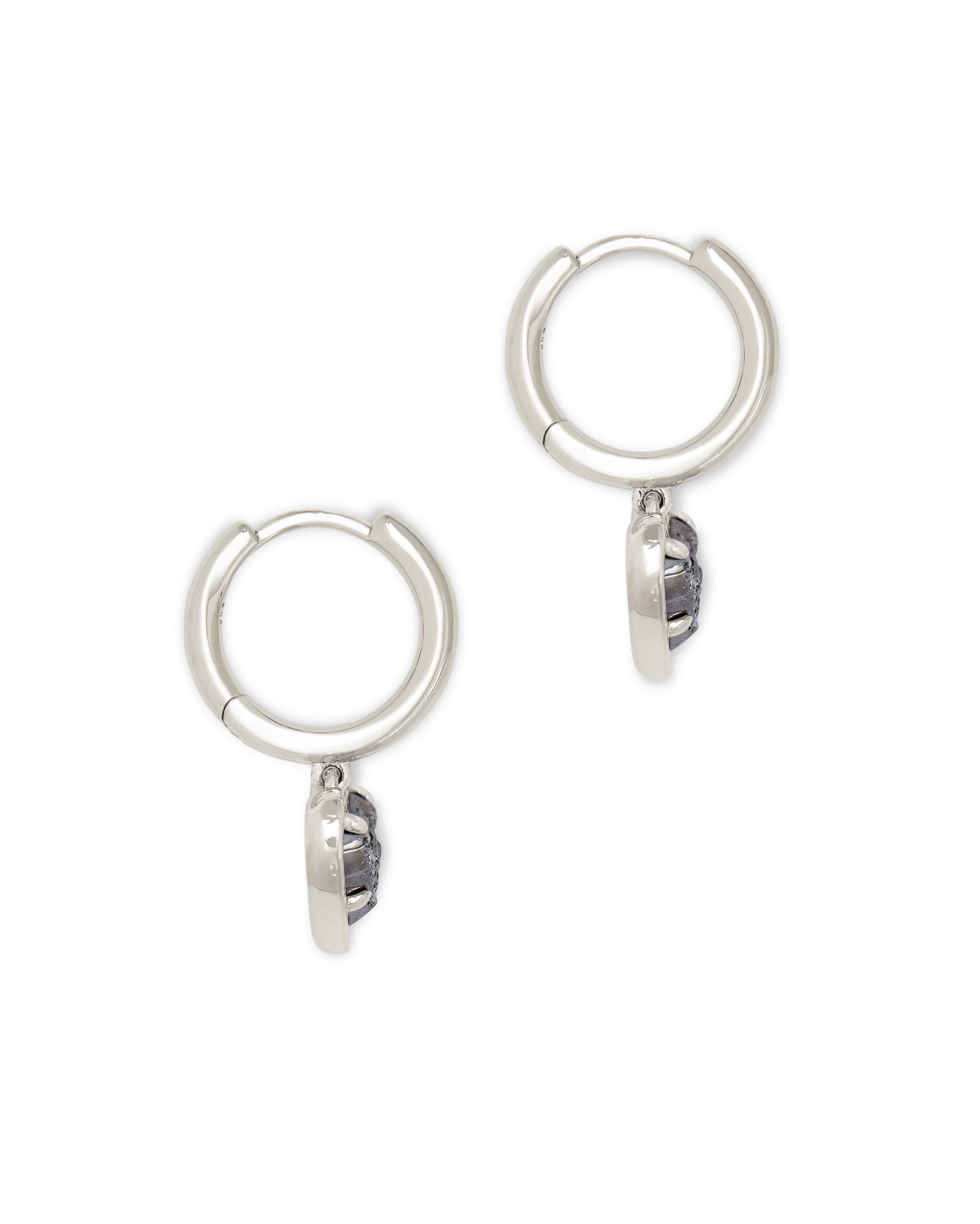 Ari Heart Silver Huggie Earrings in Platinum Drusy