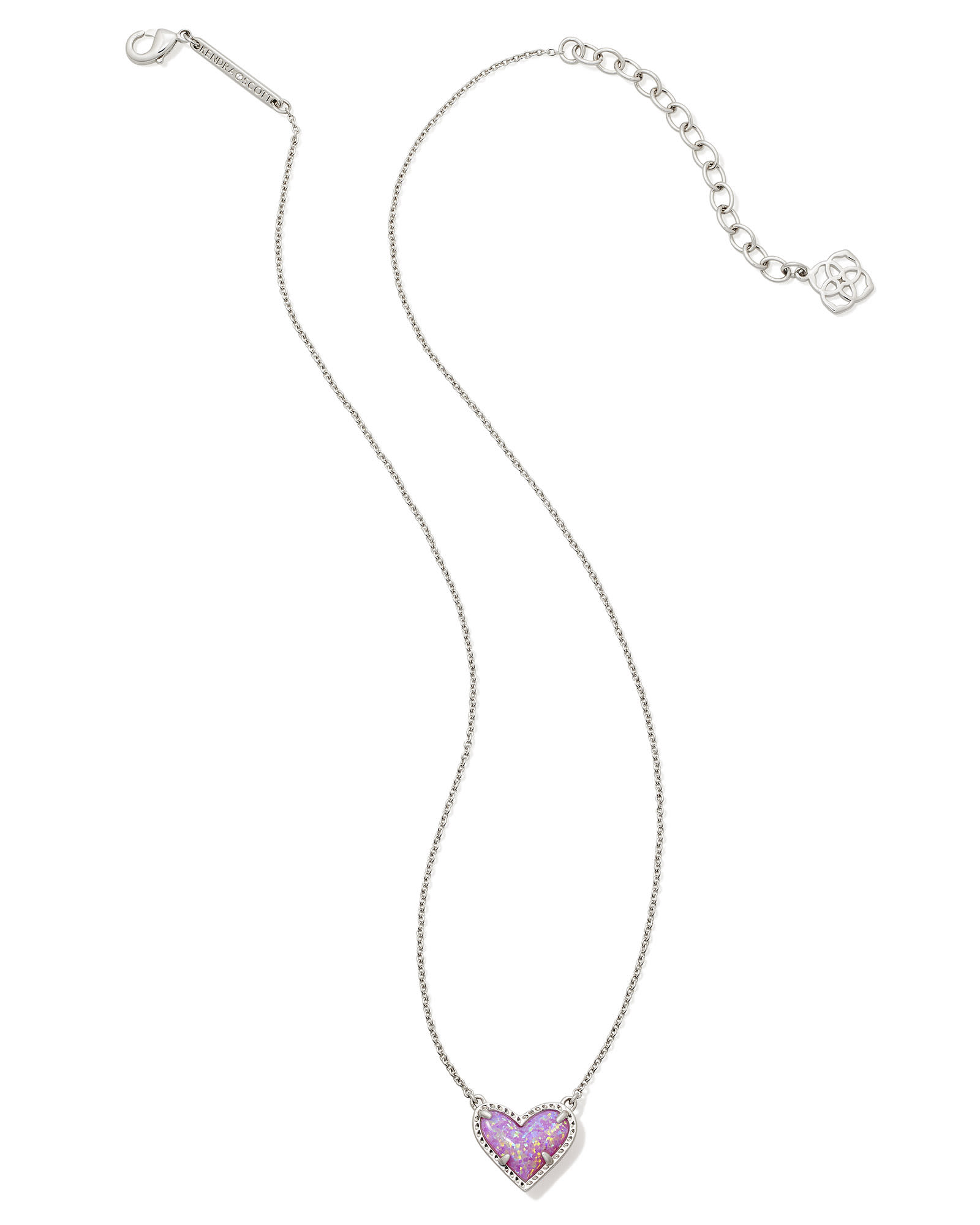 Ari Heart Silver Short Pendant Necklace in Bubblegum Pink Kyocera Opal