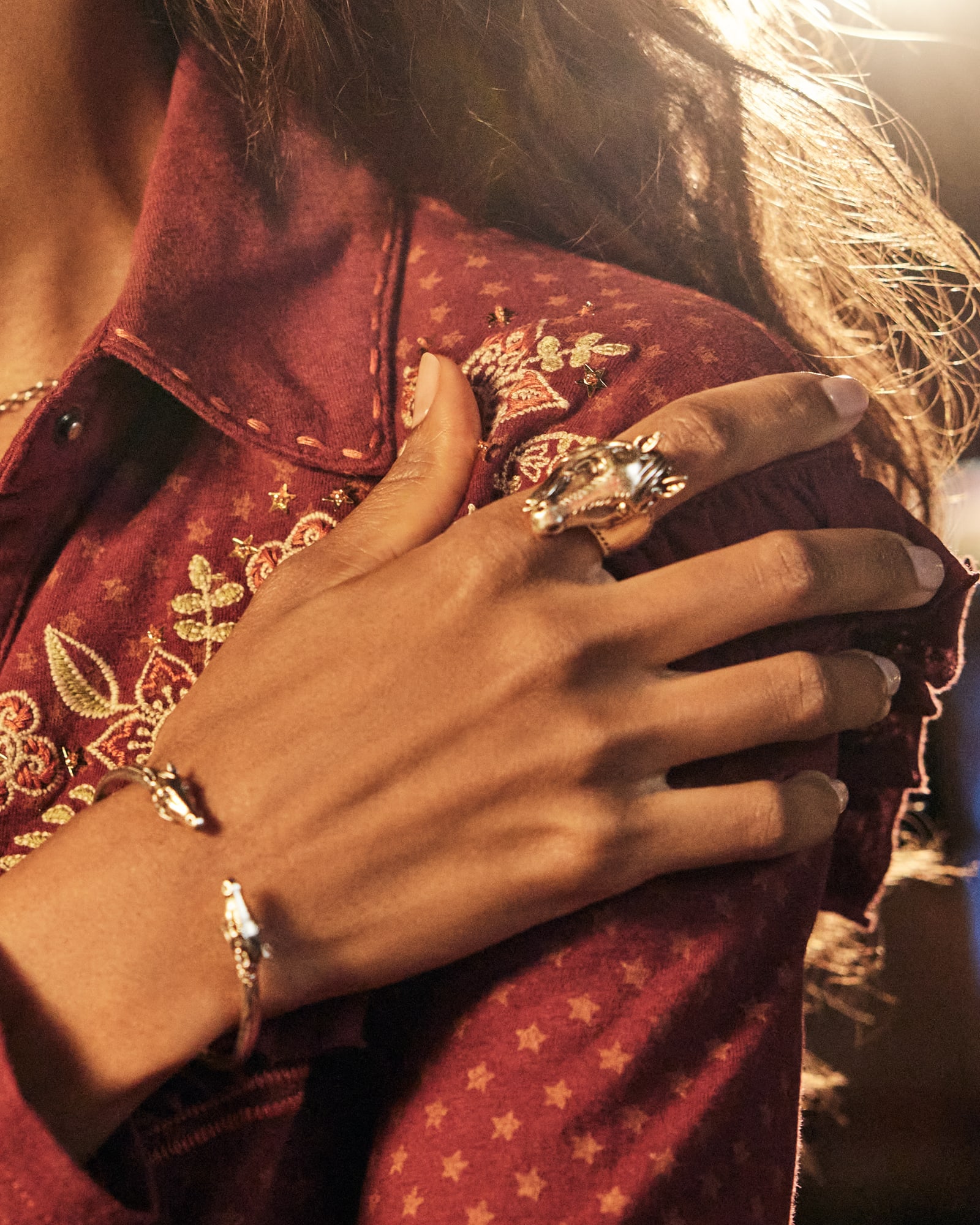 Designed and named after Kendra’s horse, the Beau Cuff Bracelet in Vintage Silver is truly one of a kind. With two hand-sketched and sculpted horse silhouettes, a vintage-style finish, and our iconic hoofprint texture, you’ll be wearing this iconic symbol of the West wherever you go.