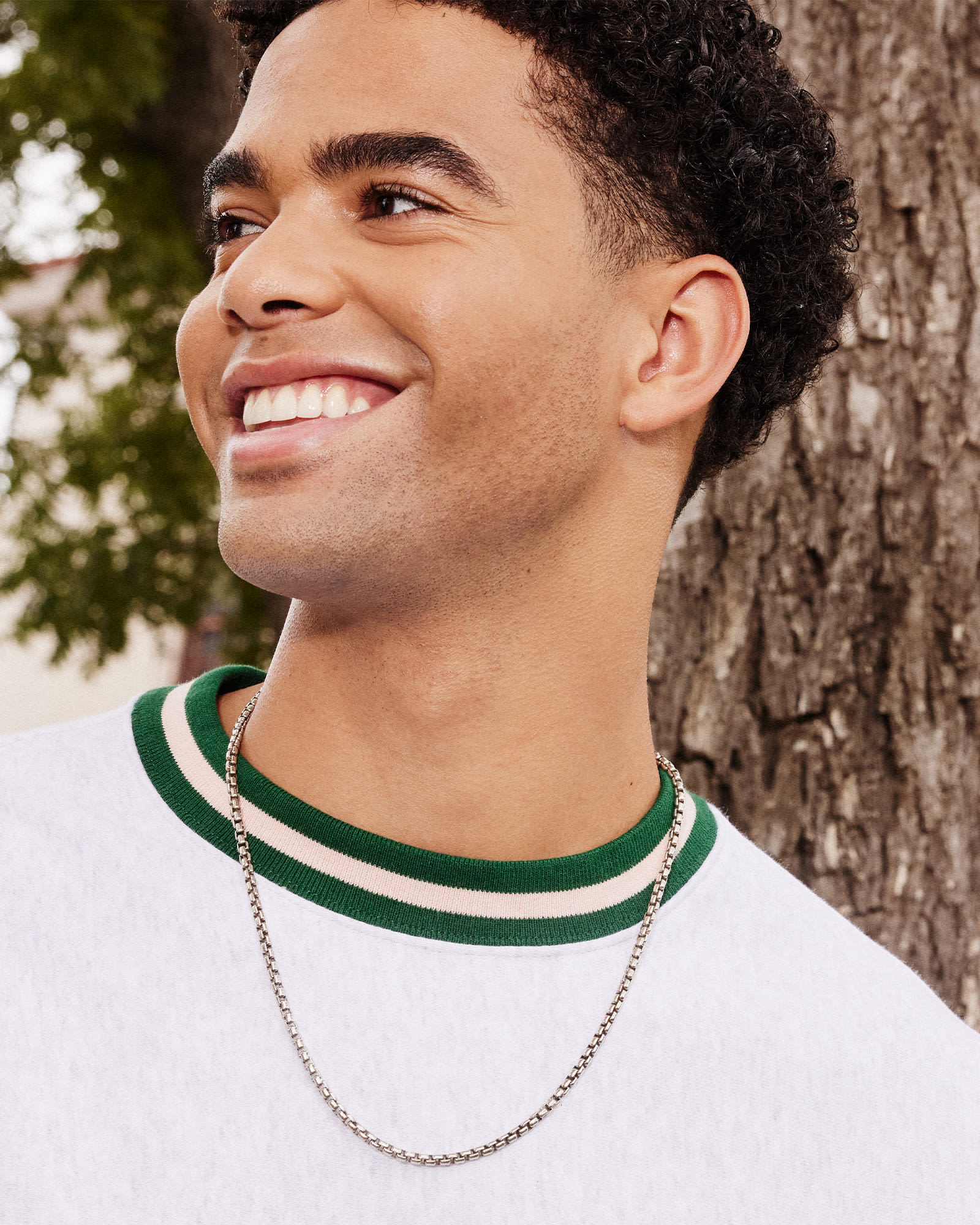 A classic that’ll be worn on repeat (AKA always), you’ll feel naked without the Beck Thin Round Box Chain Necklace in Oxidized Sterling Silver on. This timeless staple is proudly made in the USA.