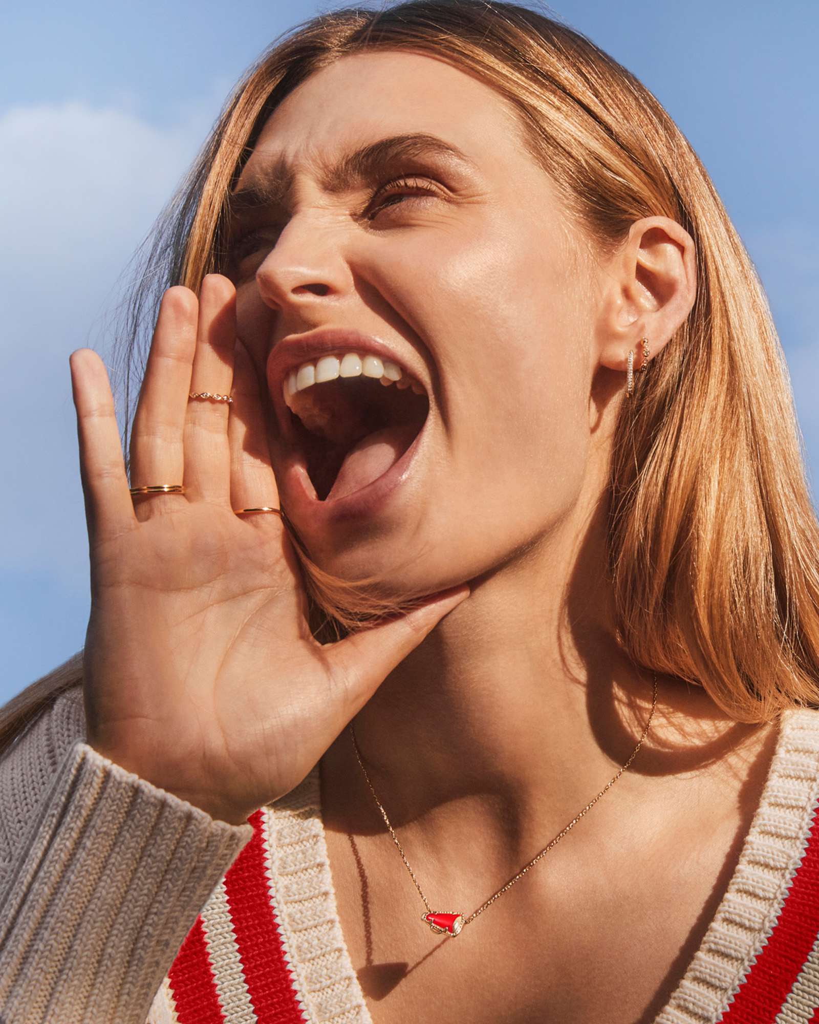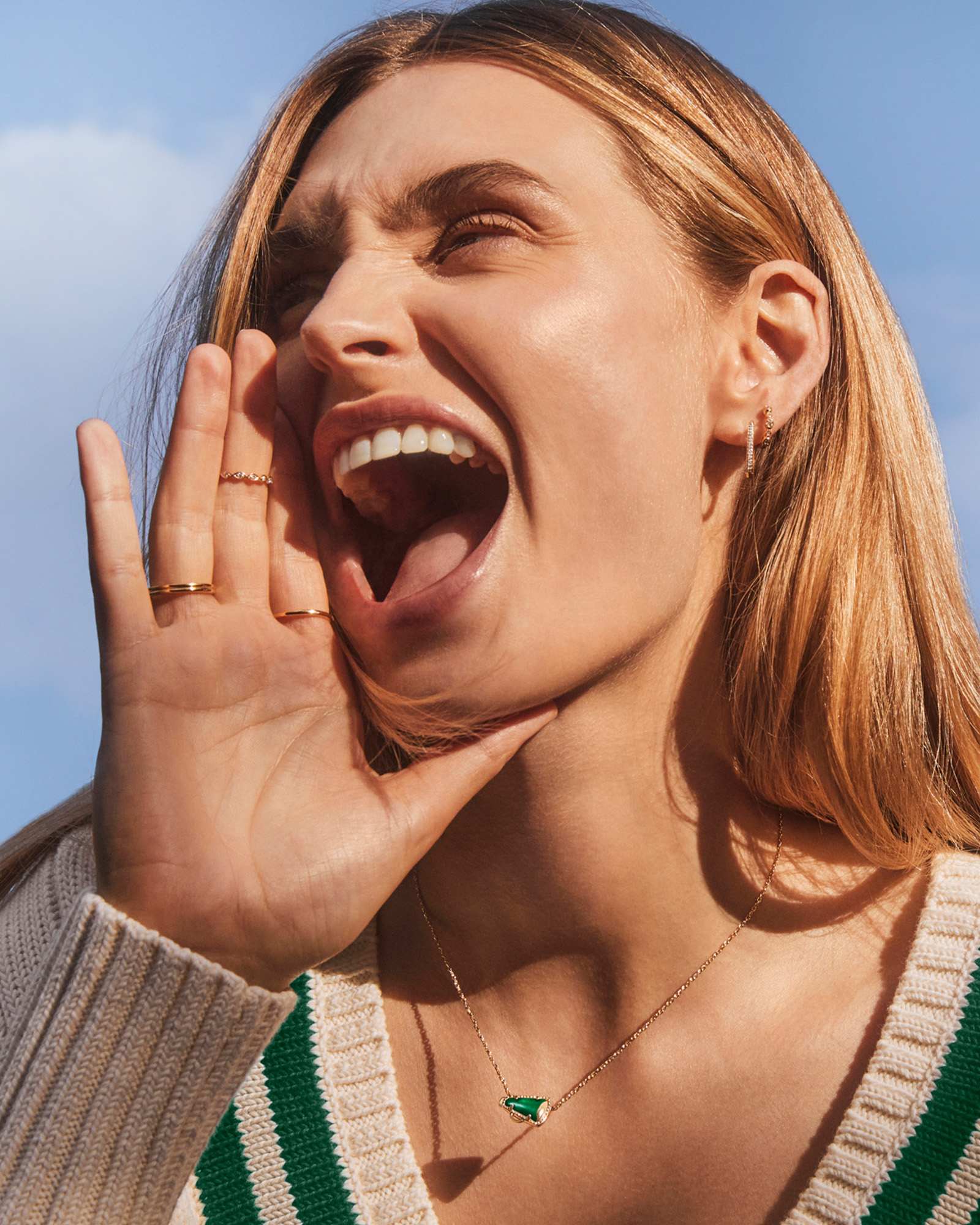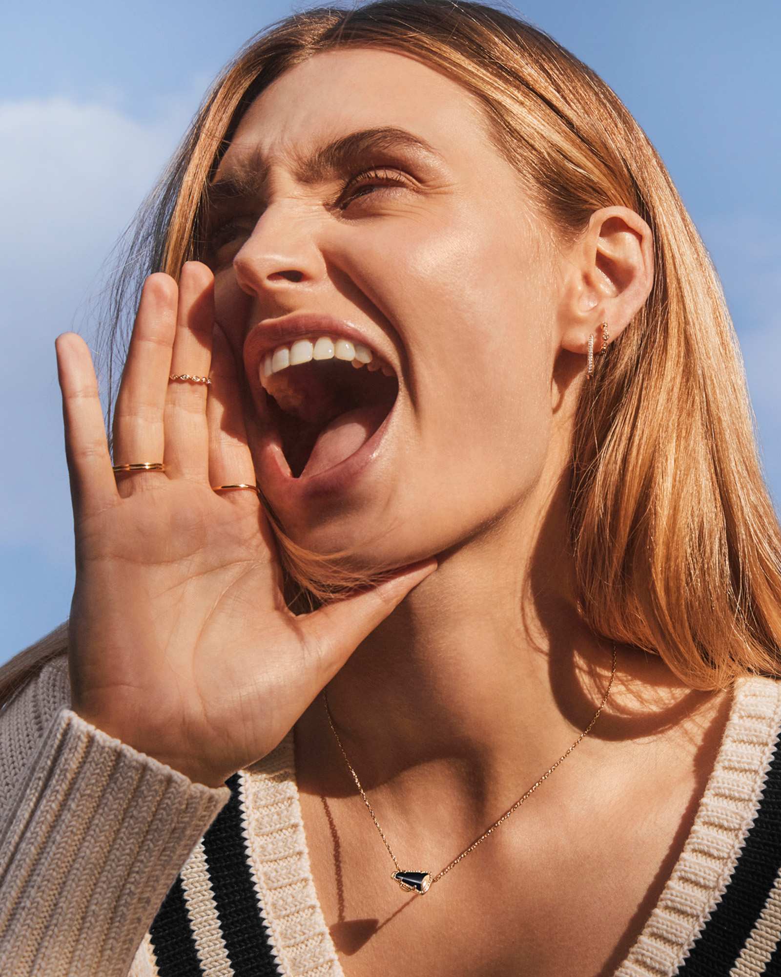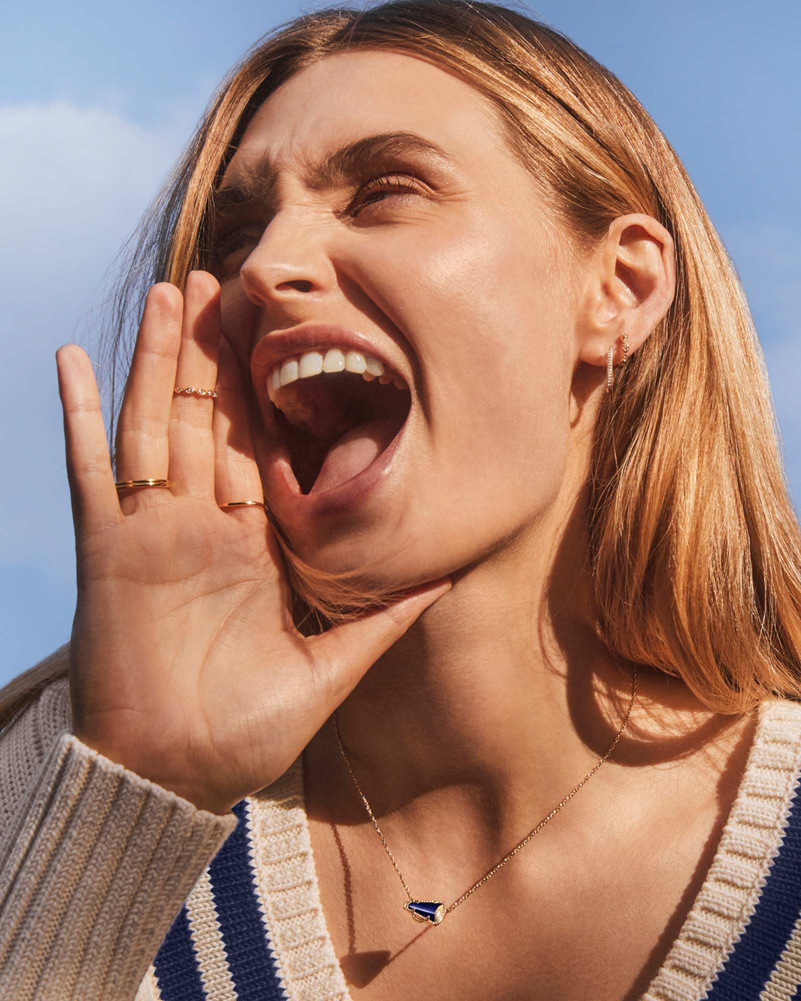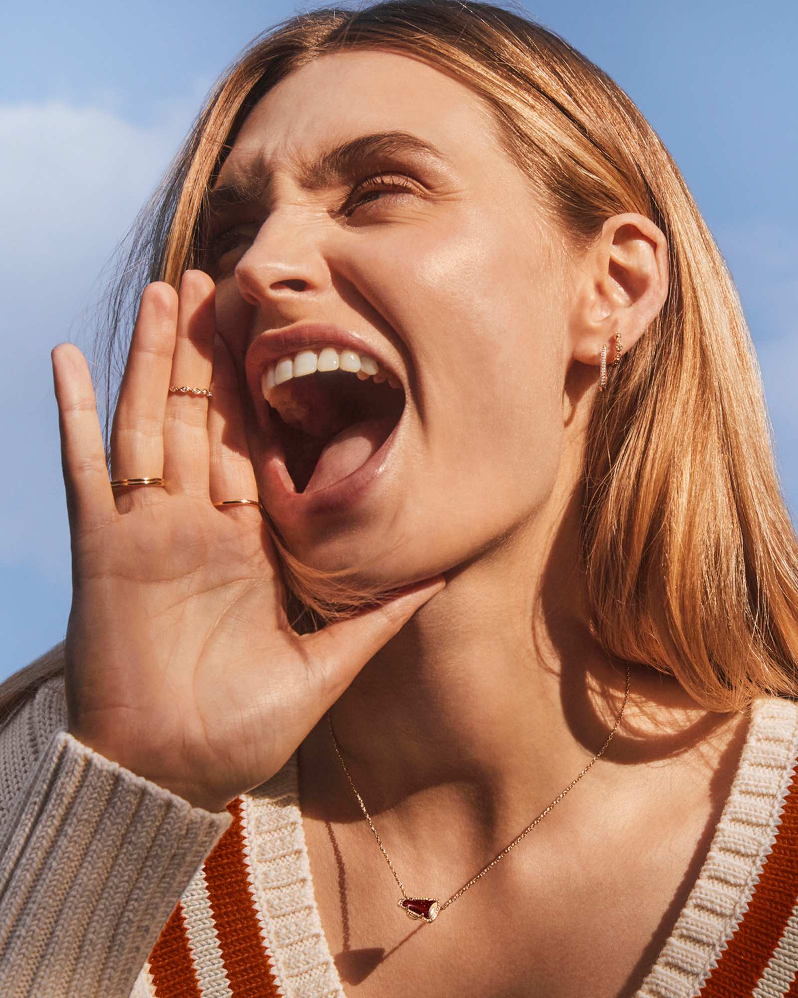 Give me a K! Give me an S! Give me a Cheer Gold Short Pendant Necklace! Minimal but full of cheer, this adorable megaphone pendant is framed by our signature hoofprint detailing for that special KS touch. Stack up some extra spirit and pair this pendant with styles in your teamās colors.