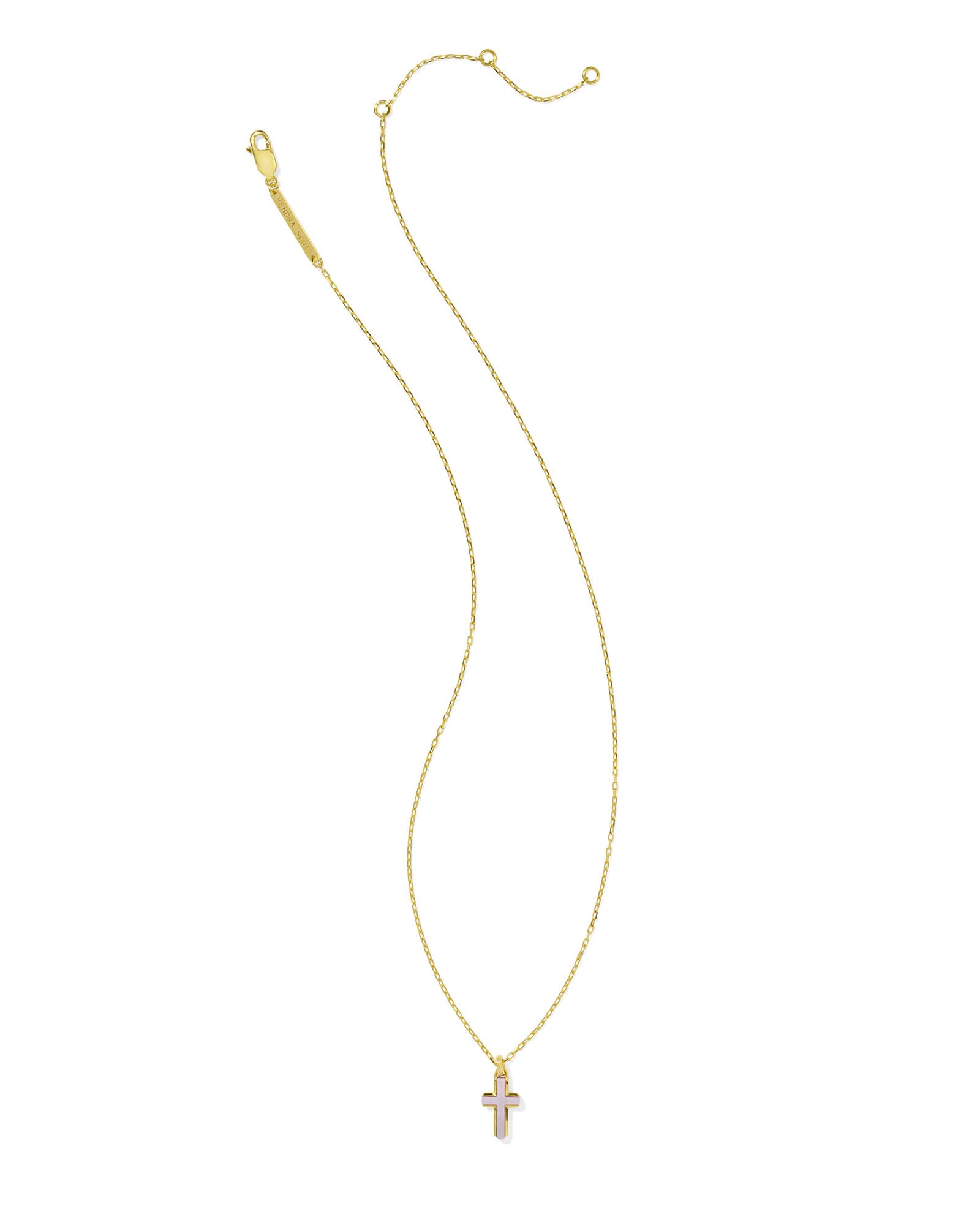 Cross 18k Gold Vermeil Stone Pendant Necklace in Blush Ivory Mother-of-Pearl