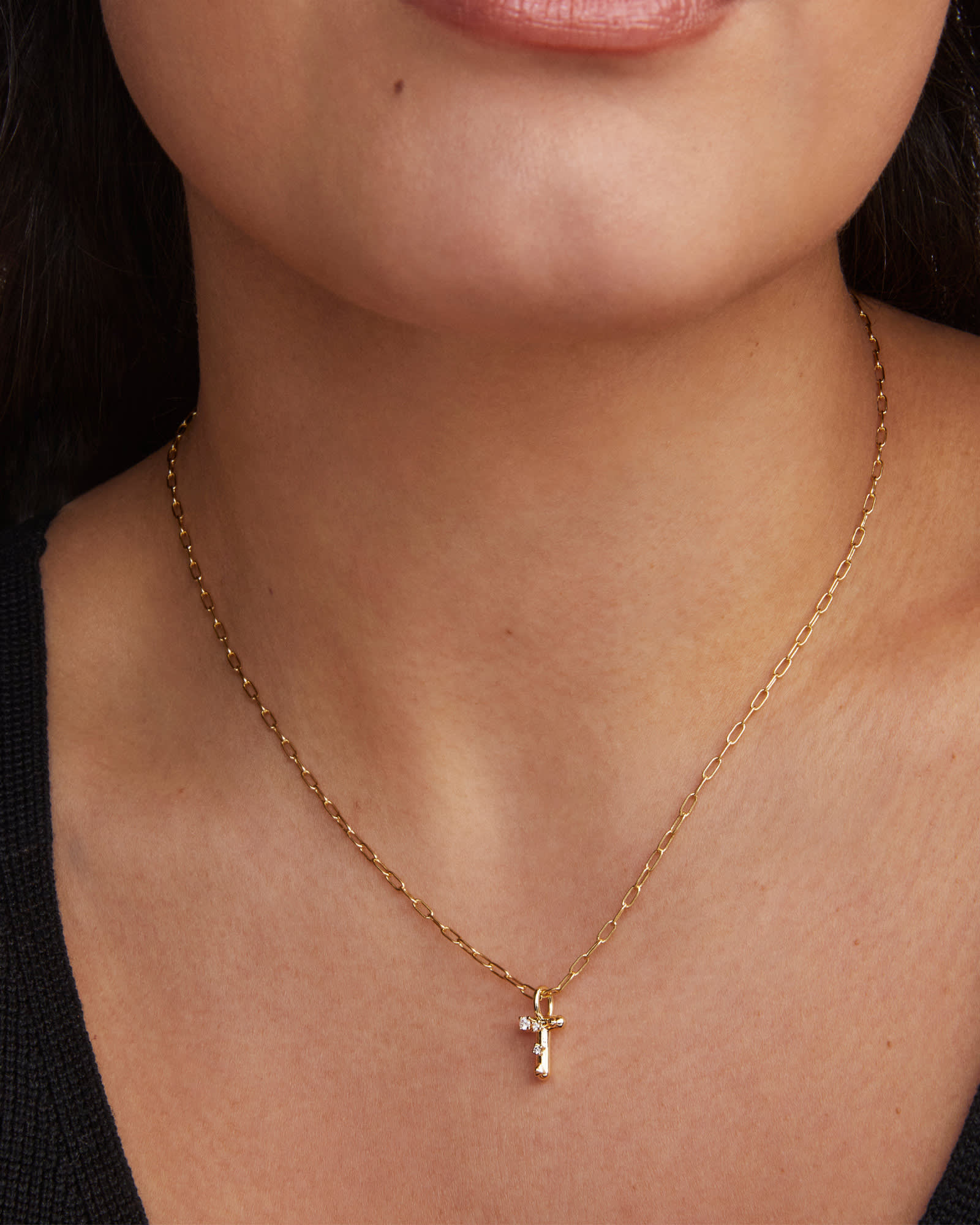 Personalize your everyday look with the Crystal Letter T Gold Short Pendant Necklace in White Crystal. Whether you’re rocking your initial or a loved one’s, this sentimental layer is one you’ll keep coming back to again and again.