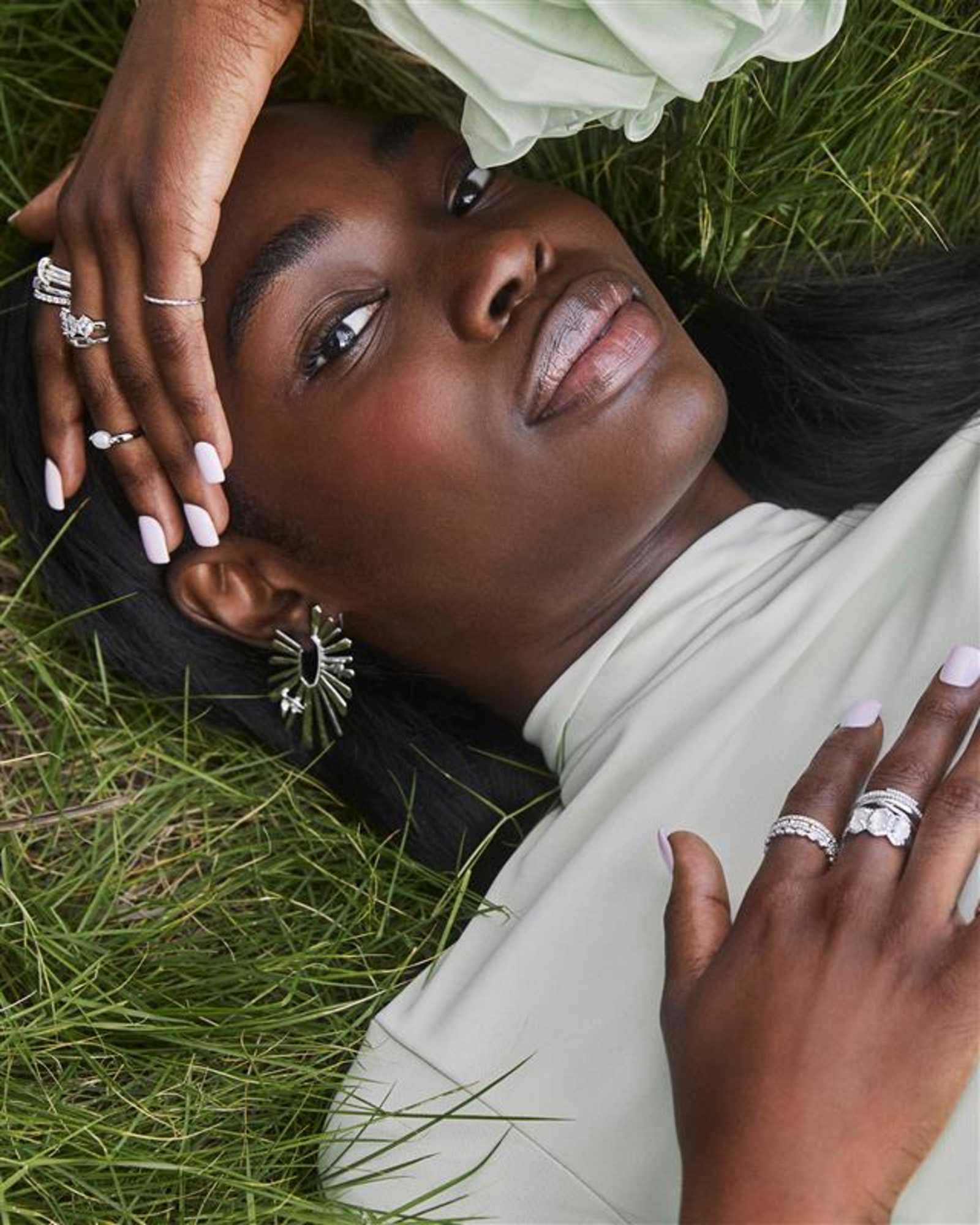 Meet your new stacking obsession, the Daphne Silver Band Ring. Featuring three stunning stones encased in a sleek, textured band, this ring can definitely shine on its own, but it also plays well with your other styles.
