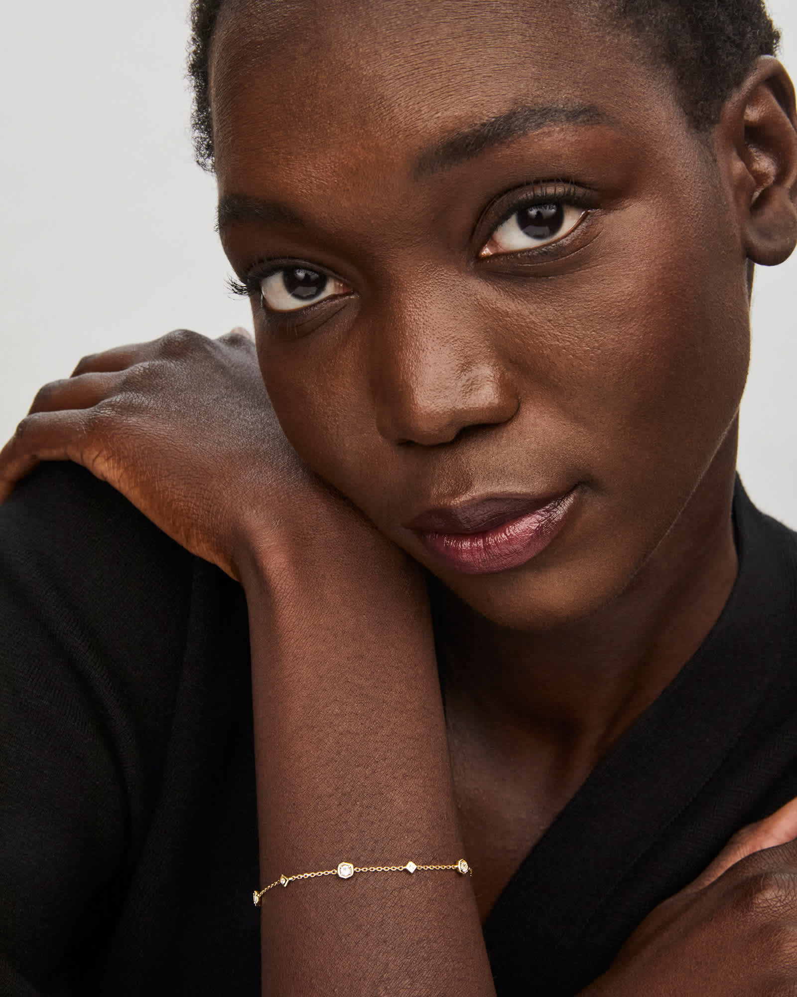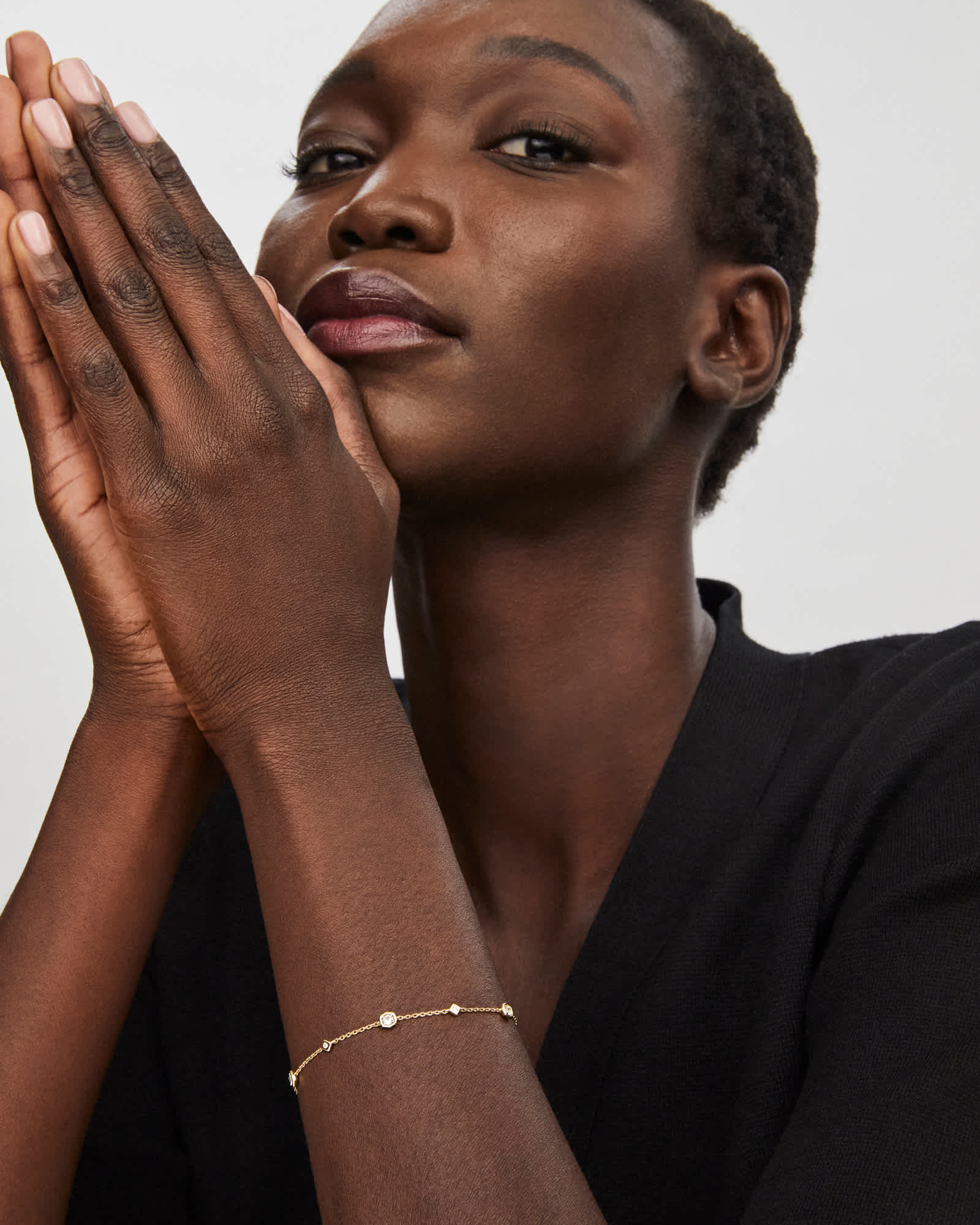 The Davie 18k Gold Vermeil Trio Delicate Bracelet in White Sapphire is a minimalist design complemented by moments of subtle sparkle. Soon to be your favorite stacking piece, this elegant and elevated chain bracelet is crafted with long-lasting materials designed to shine for years to come.