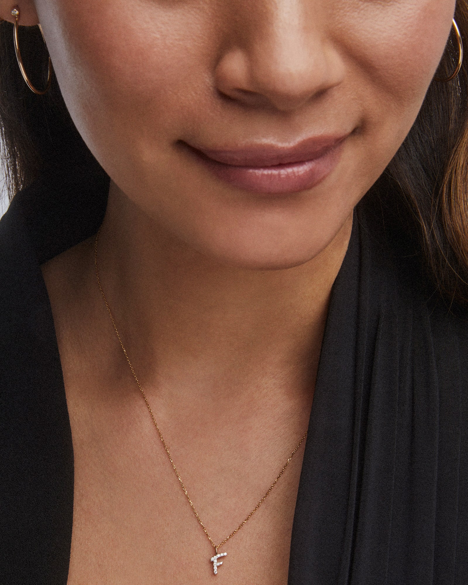 The Diamond Letter F Pendant Necklace in 14k Yellow Gold is a striking example of sentimental style. Beautifully timeless and personal to each wearer, the Diamond Letter F Pendant Necklace was designed to be treasured for a lifetime. To create these pendant necklaces, each letter is hand drawn in our Austin design studio, then layered with pave diamonds for breathtaking sparkle. Shop the Diamond Letter Pendant Necklace Collection