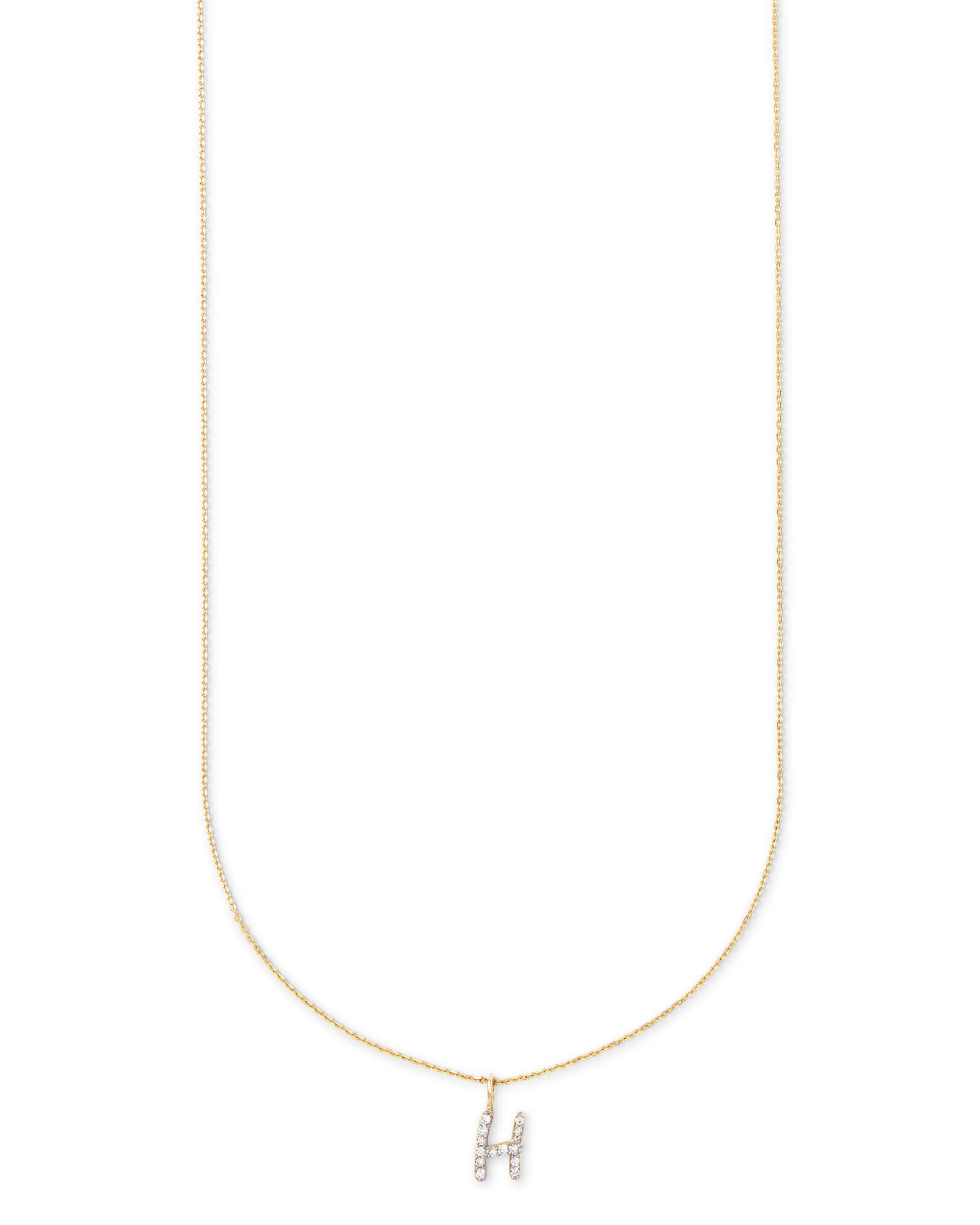 The Diamond Letter H Pendant Necklace in 14k Yellow Gold is a striking example of sentimental style. Beautifully timeless and personal to each wearer, the Diamond Letter H Pendant Necklace was designed to be treasured for a lifetime. To create these pendant necklaces, each letter is hand drawn in our Austin design studio, then layered with pave diamonds for breathtaking sparkle. Shop the Diamond Letter Pendant Necklace Collection