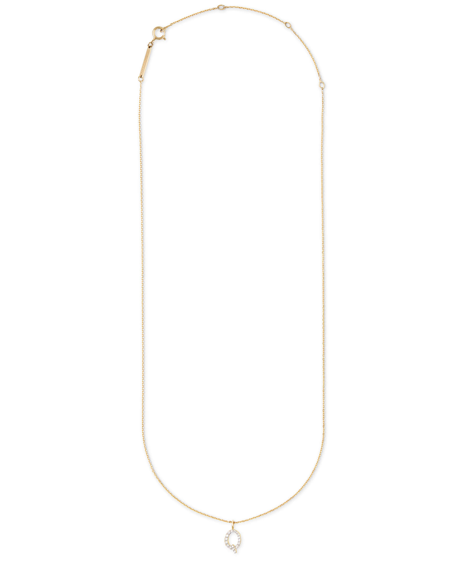 Diamond Letter Q Pendant Necklace in 14k Yellow Gold