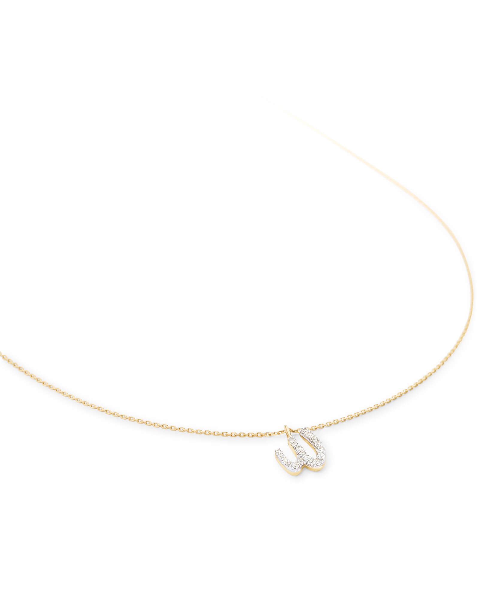 Diamond Letter W Pendant Necklace in 14k Yellow Gold